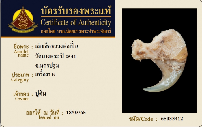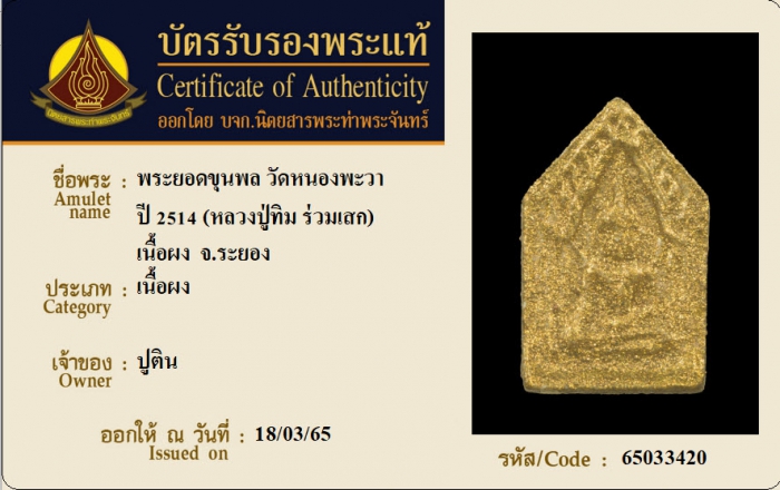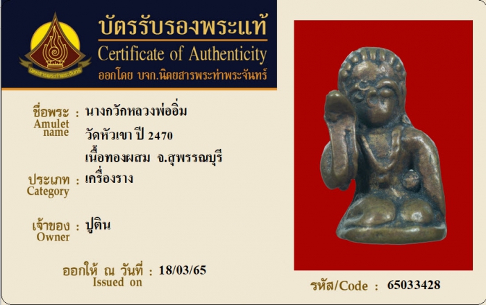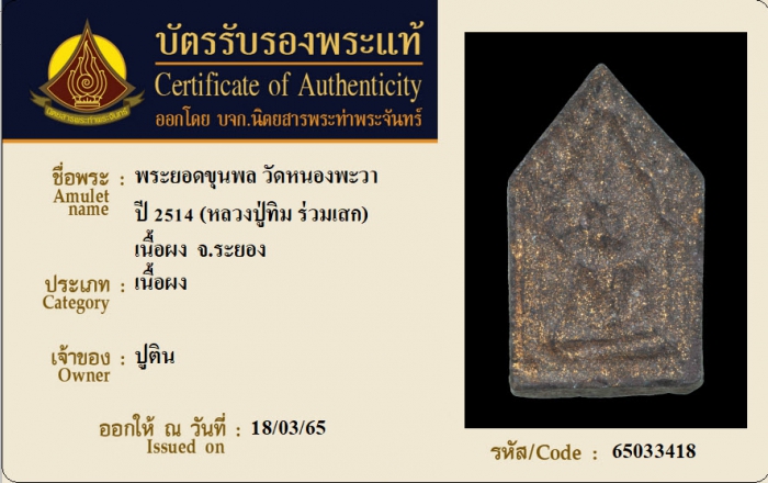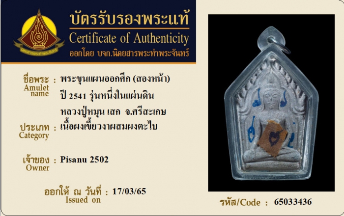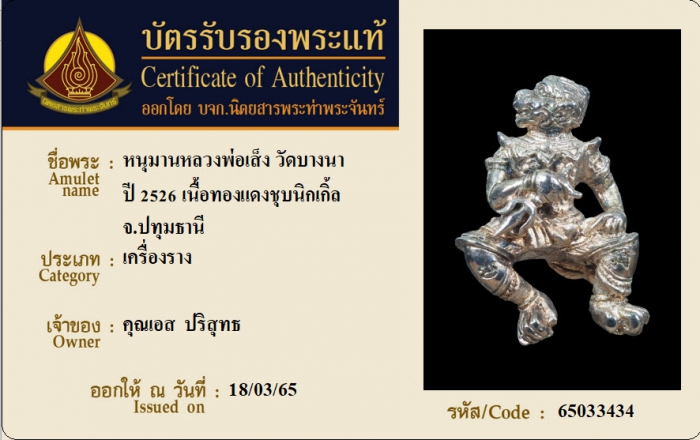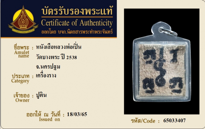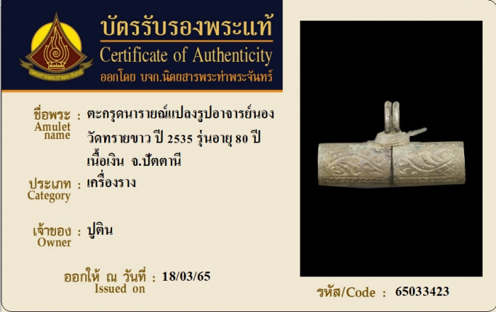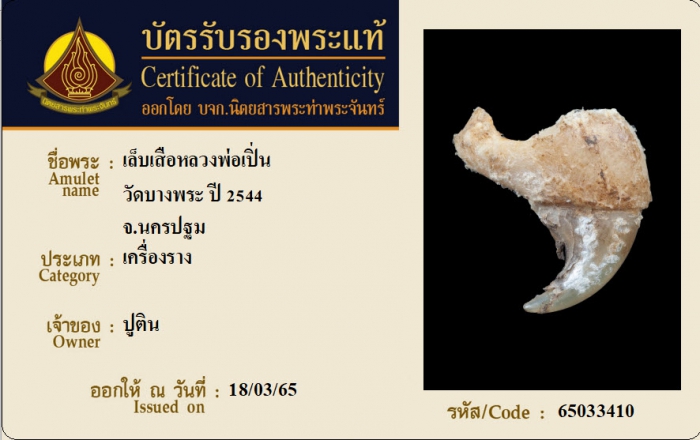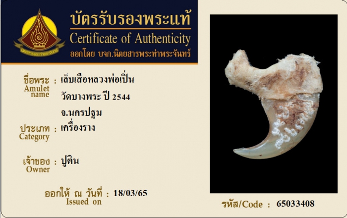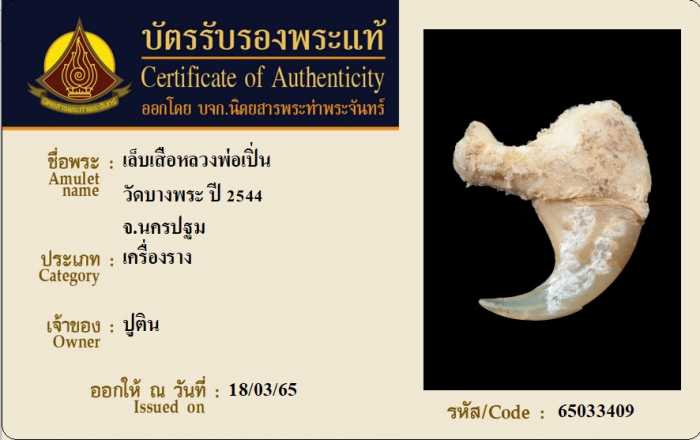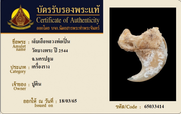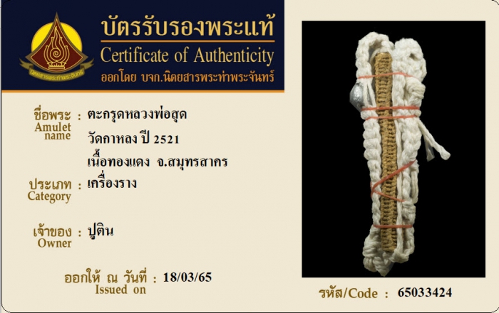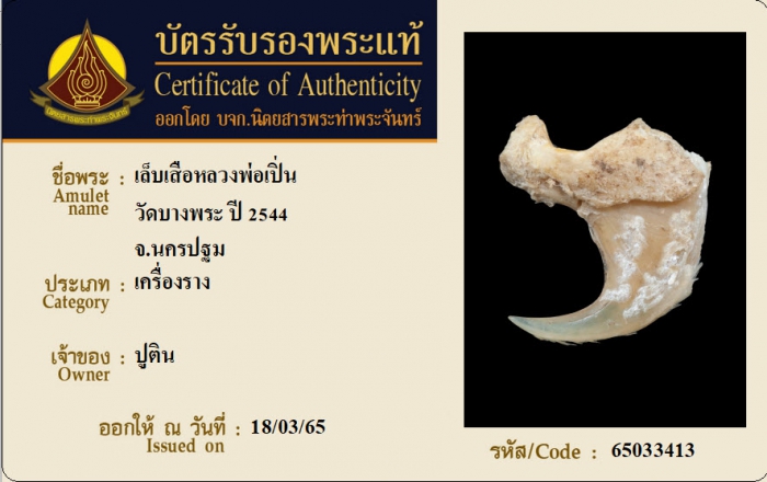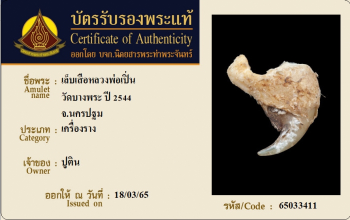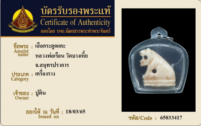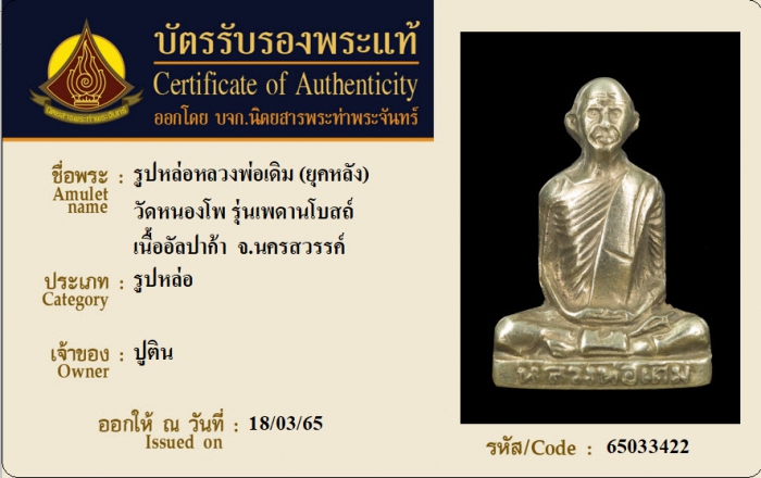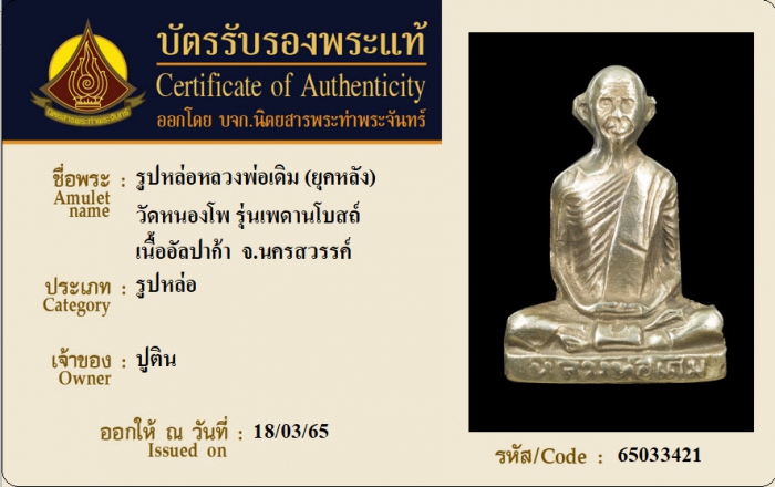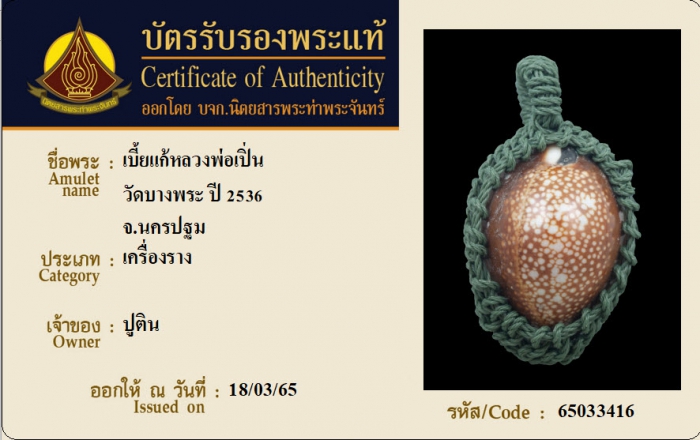 ค้นหาใบการันตีพระแท้