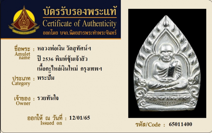 ค้นหาใบการันตีพระแท้