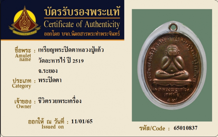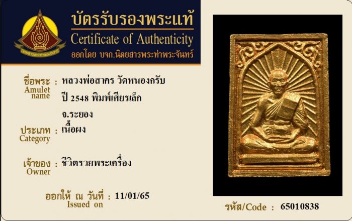 ค้นหาใบการันตีพระแท้