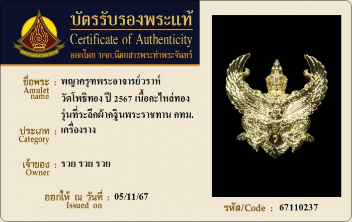 ค้นหาใบการันตีพระแท้