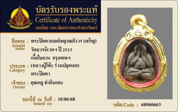 ค้นหาใบการันตีพระแท้