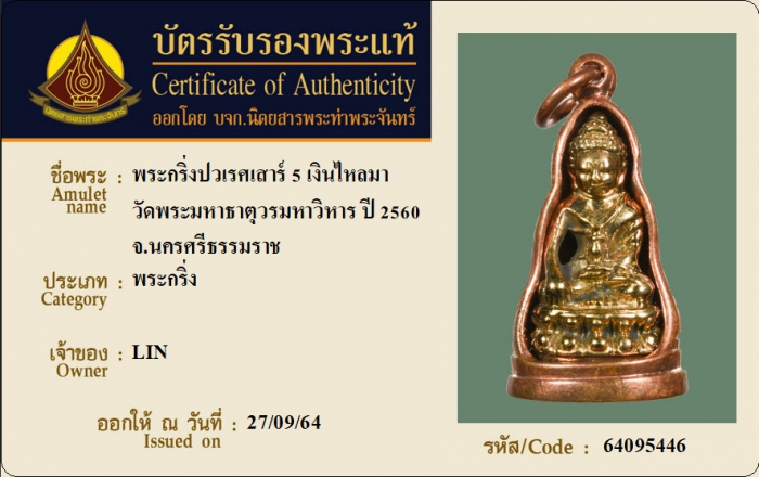 ค้นหาใบการันตีพระแท้