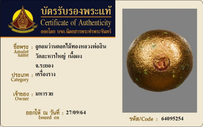 ค้นหาใบการันตีพระแท้