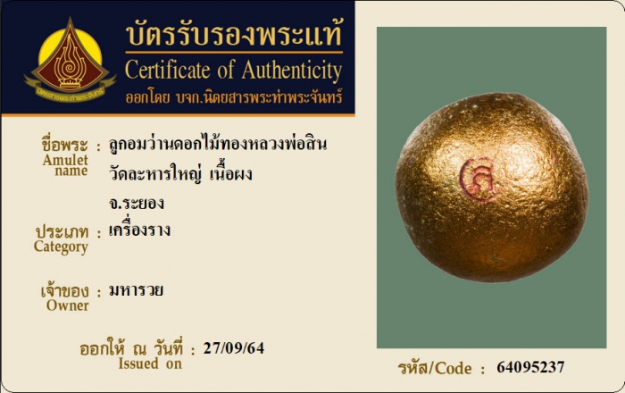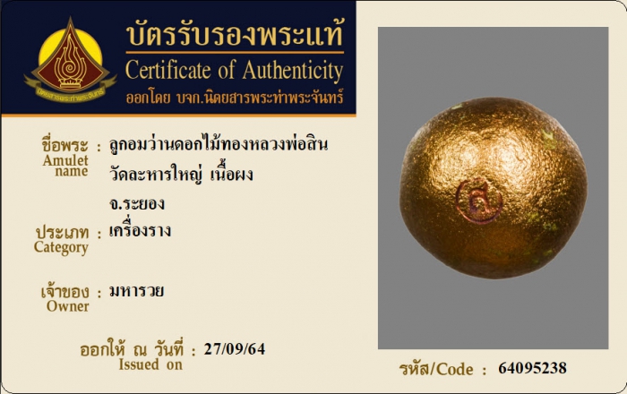 ค้นหาใบการันตีพระแท้
