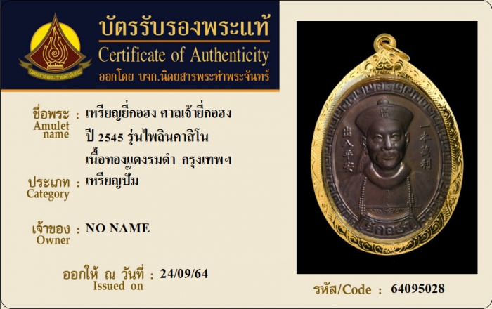 ค้นหาใบการันตีพระแท้