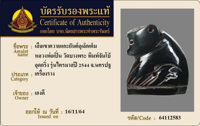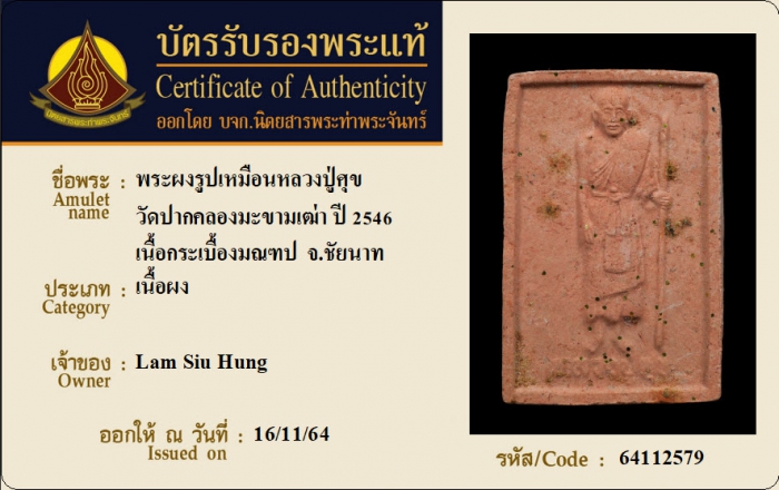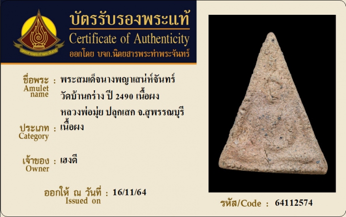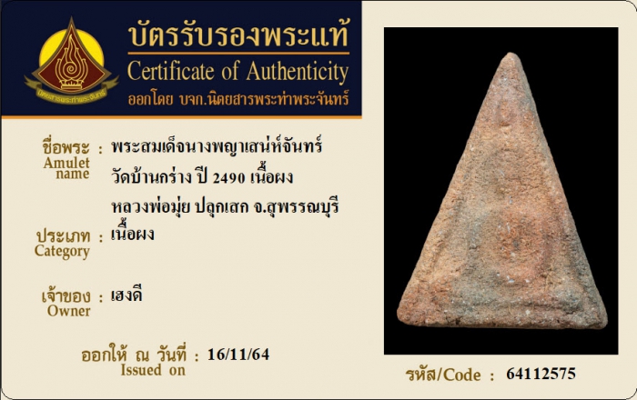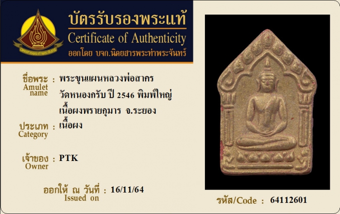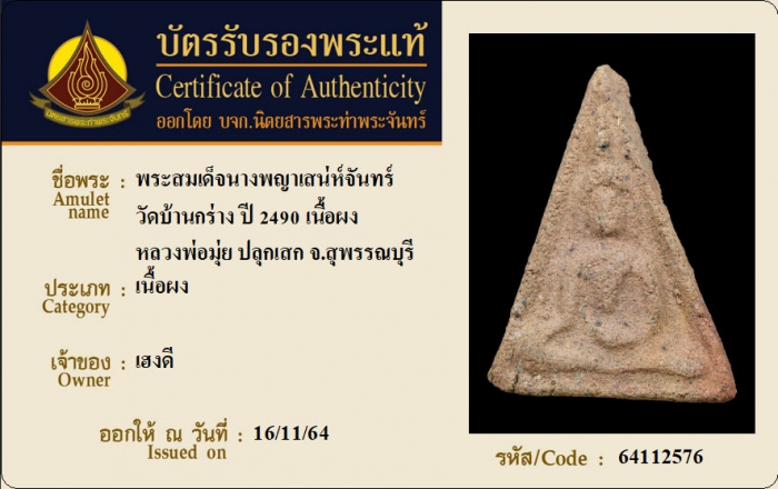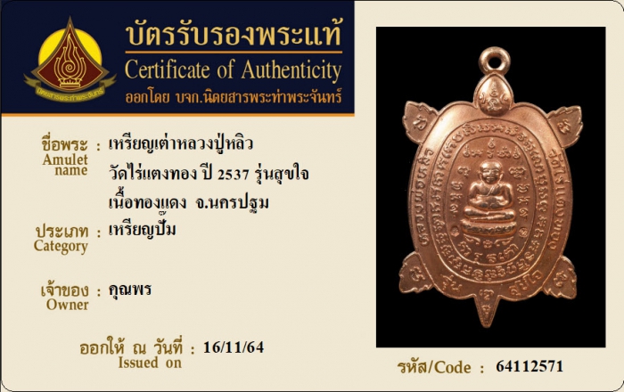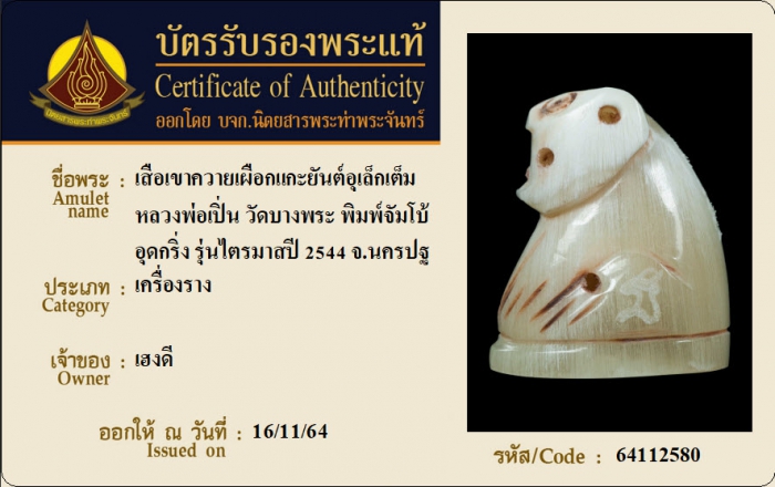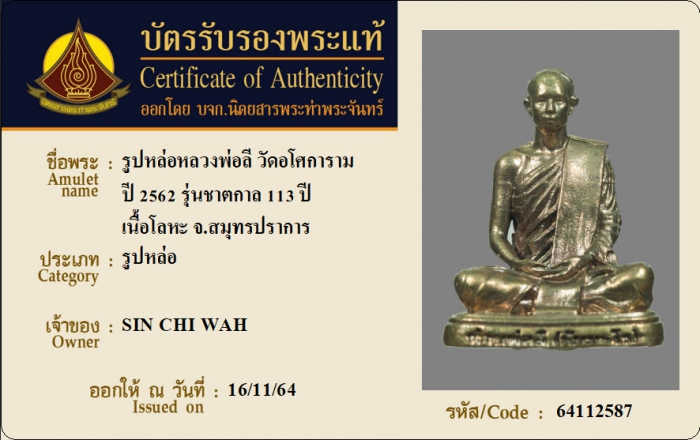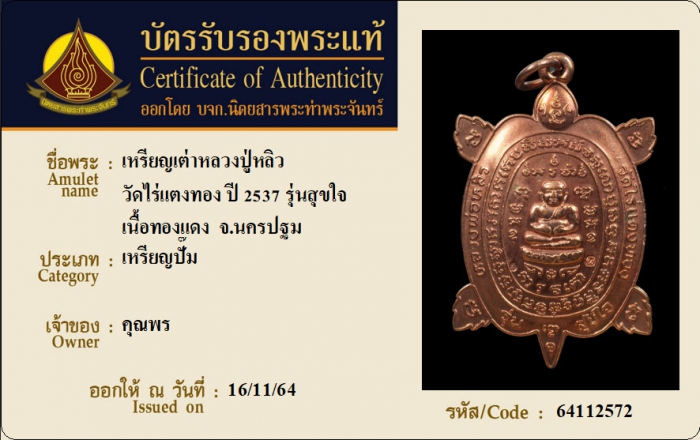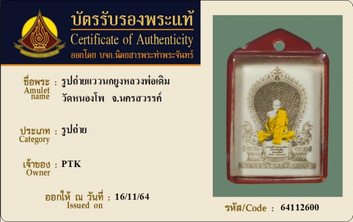 ค้นหาใบการันตีพระแท้