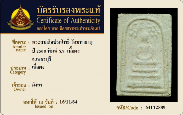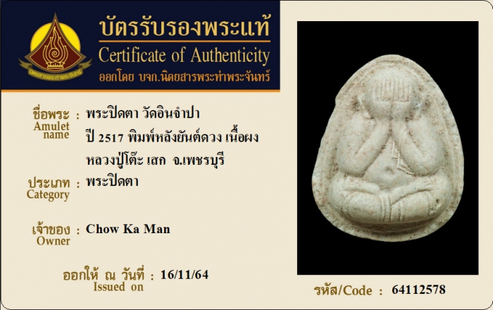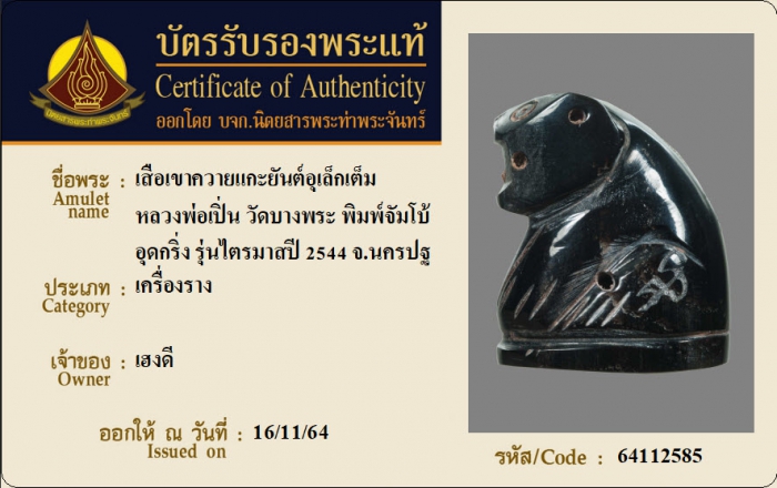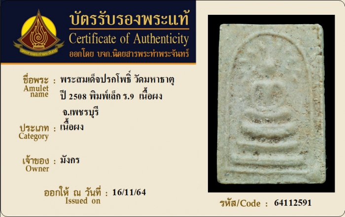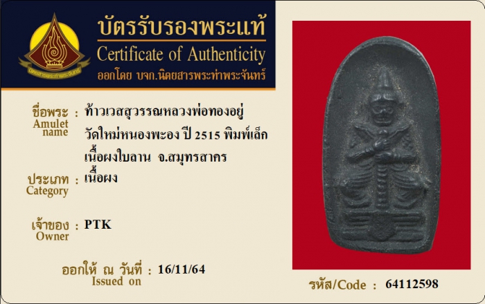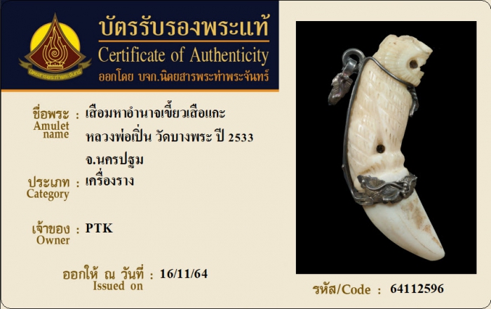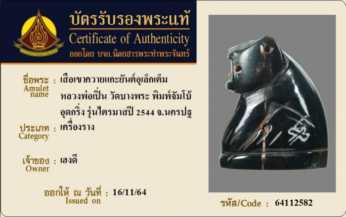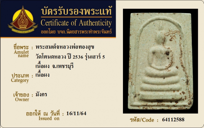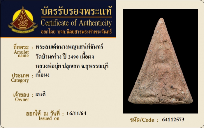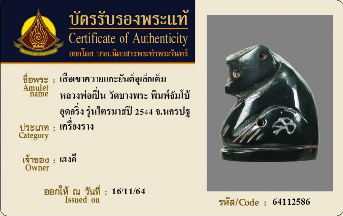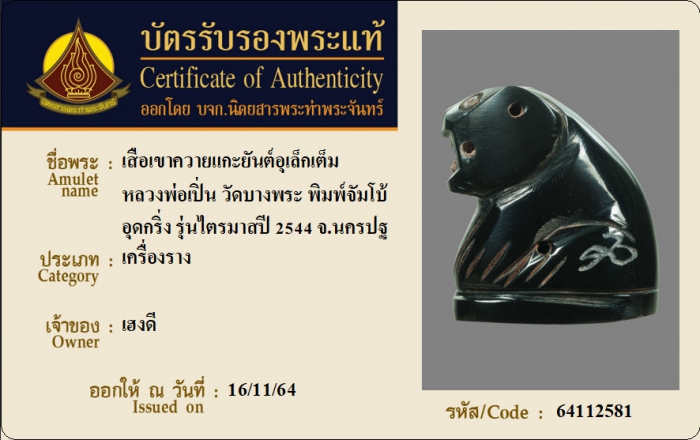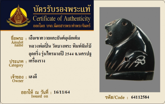 ค้นหาใบการันตีพระแท้