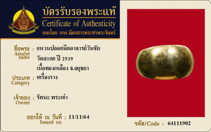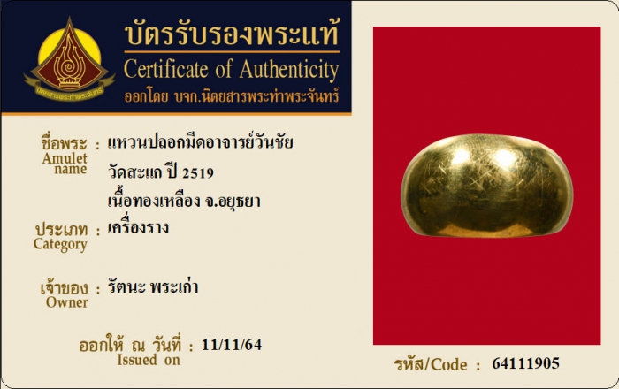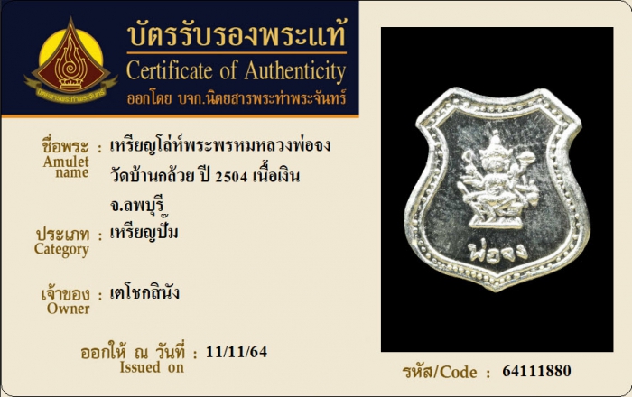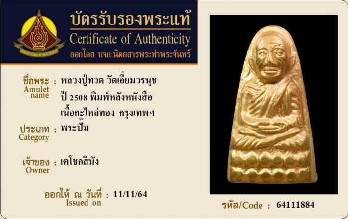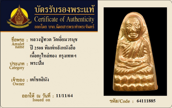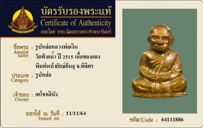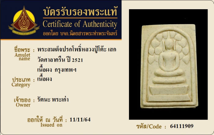 ค้นหาใบการันตีพระแท้