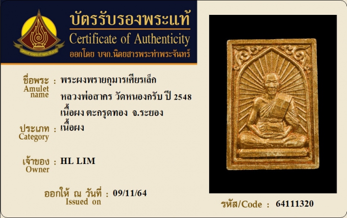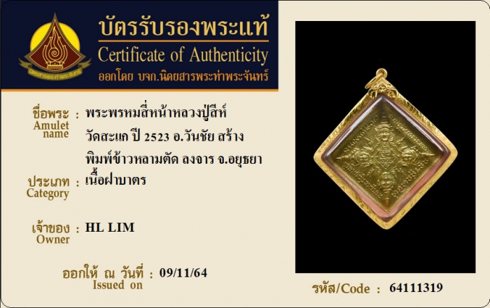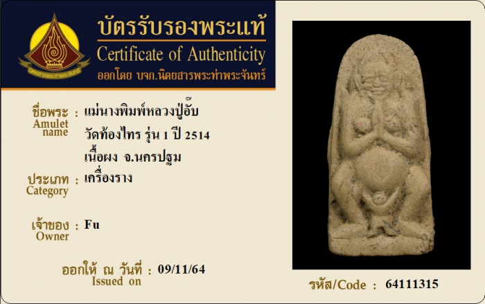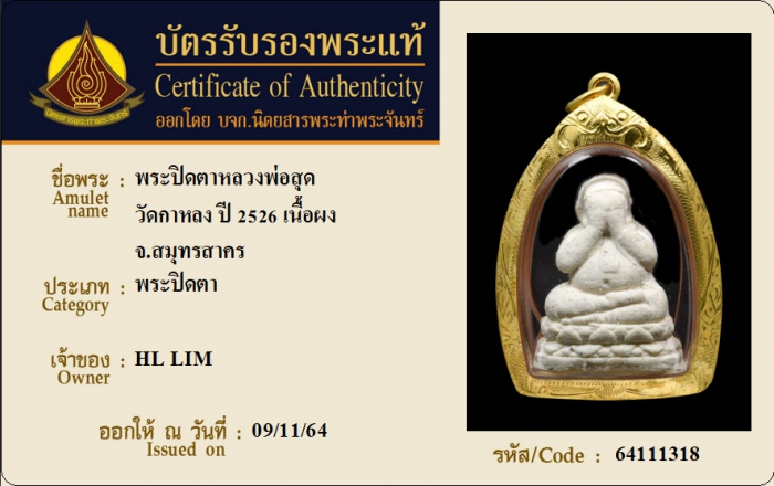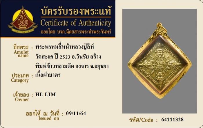 ค้นหาใบการันตีพระแท้