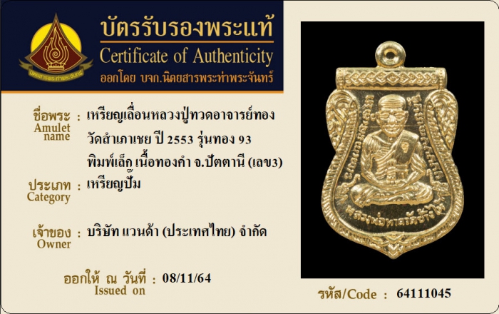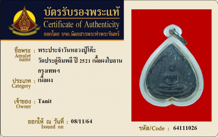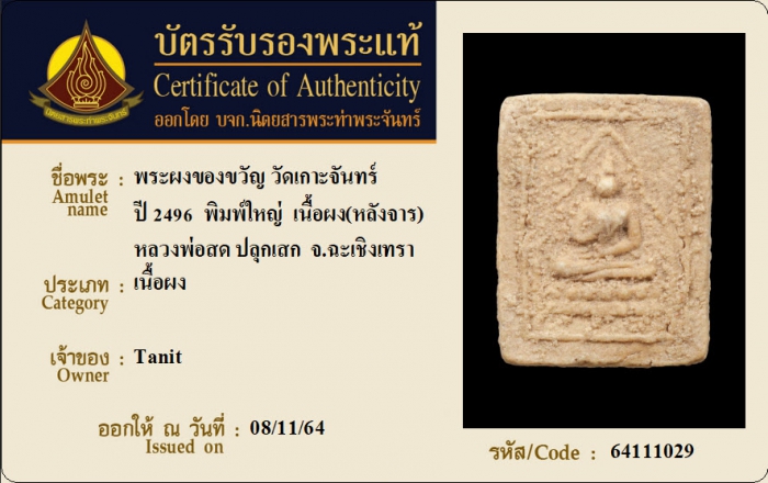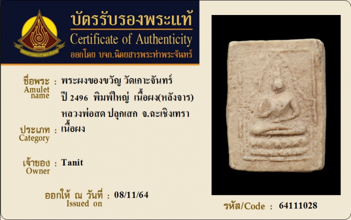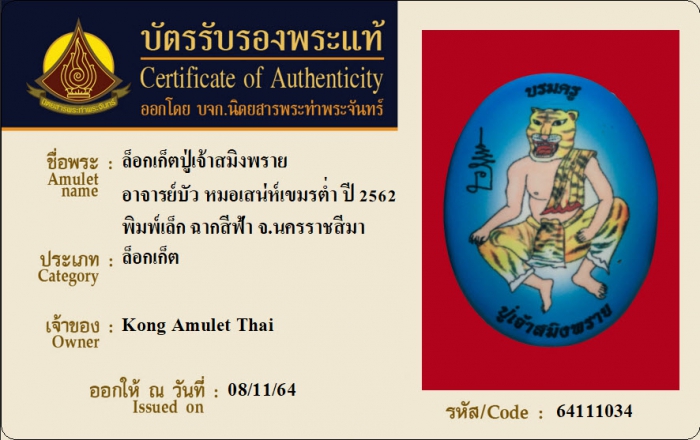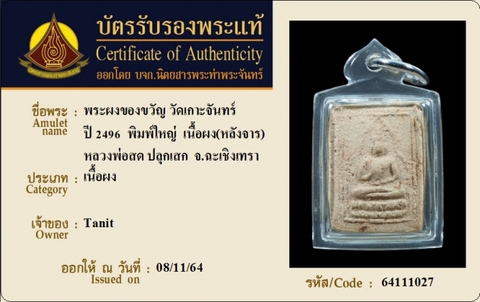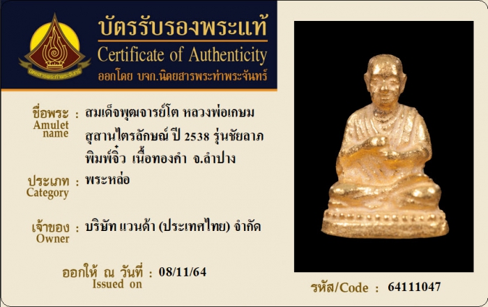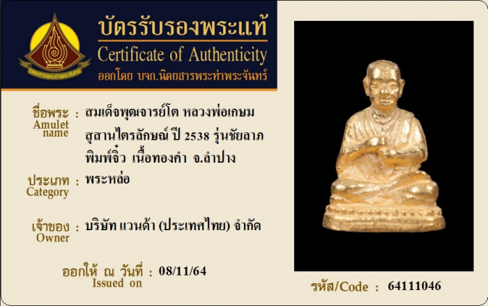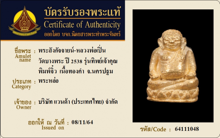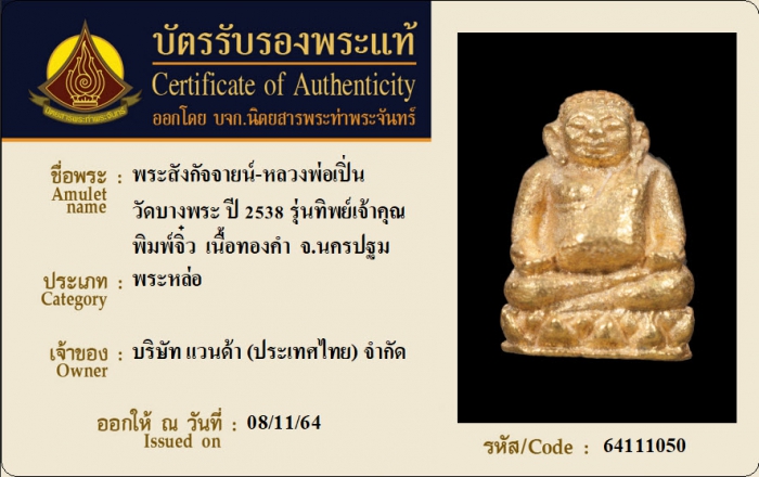 ค้นหาใบการันตีพระแท้