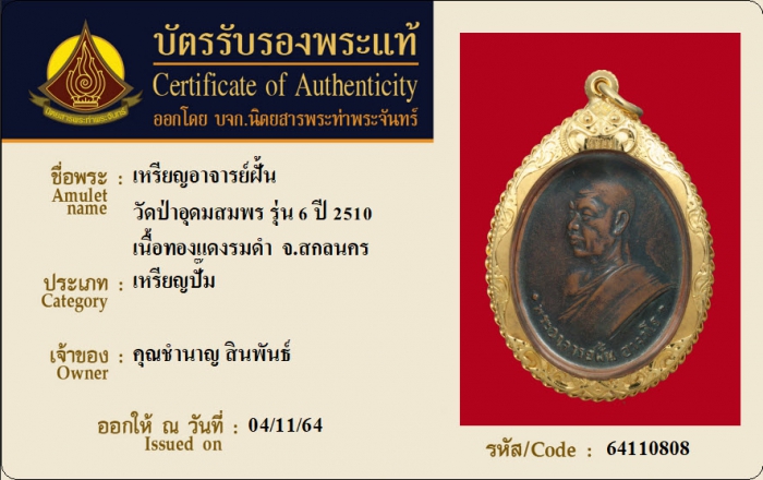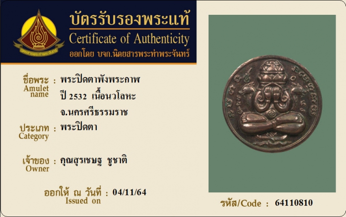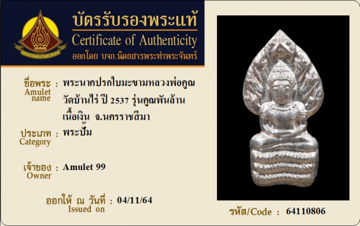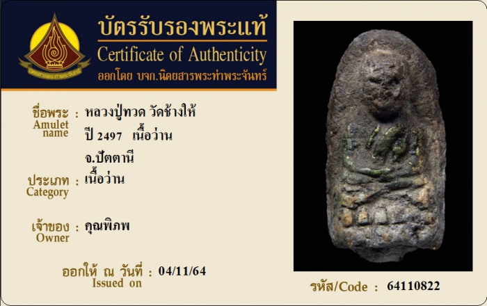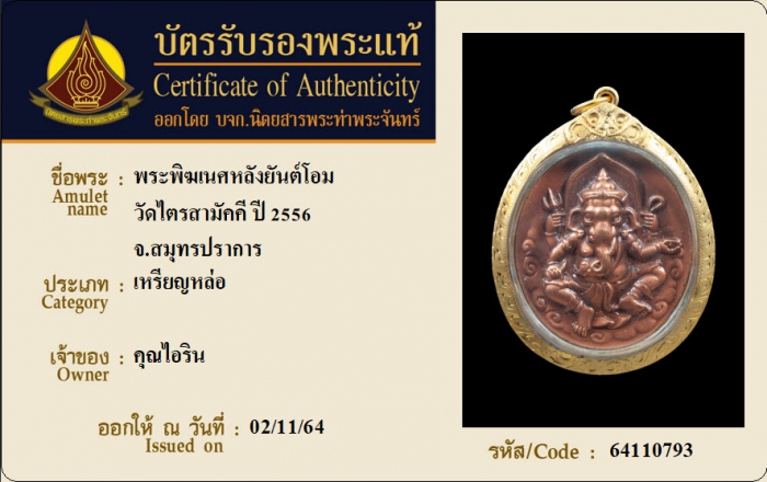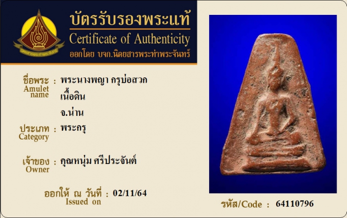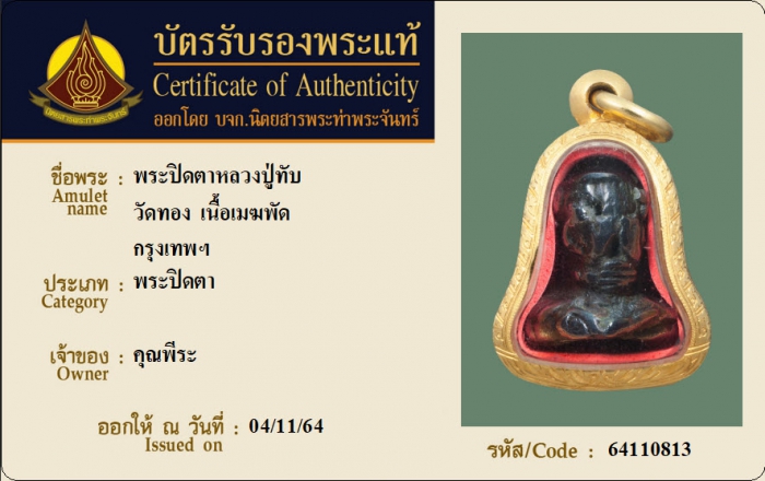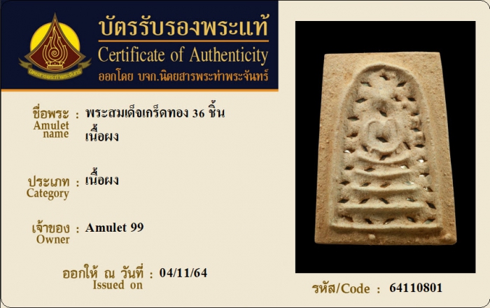 ค้นหาใบการันตีพระแท้