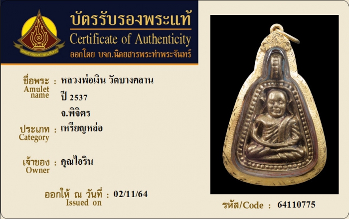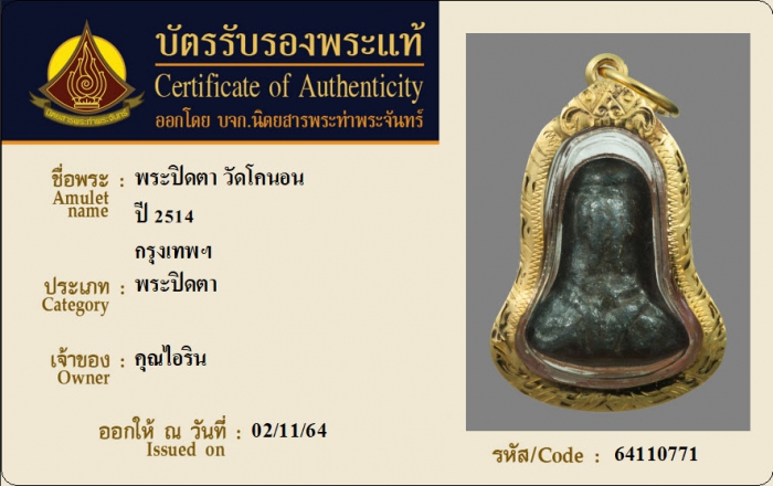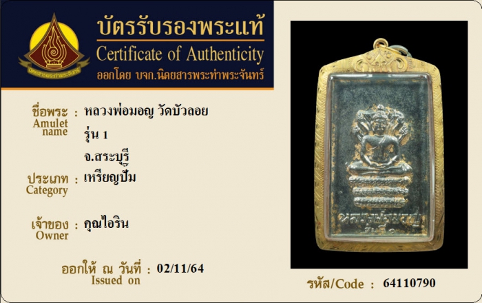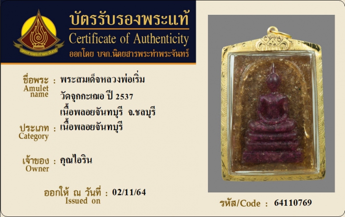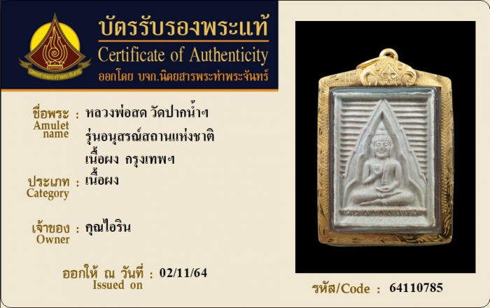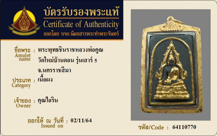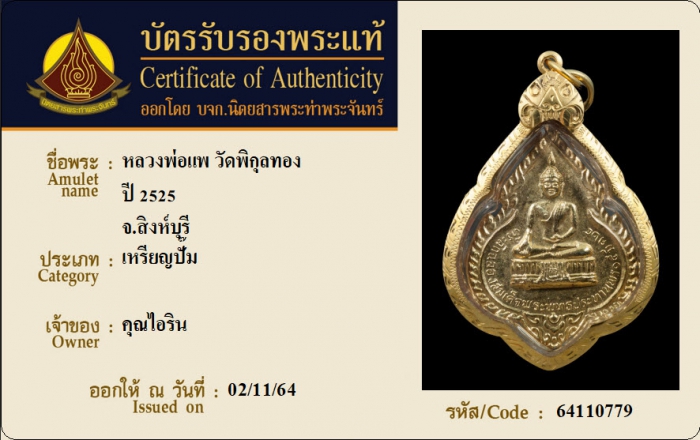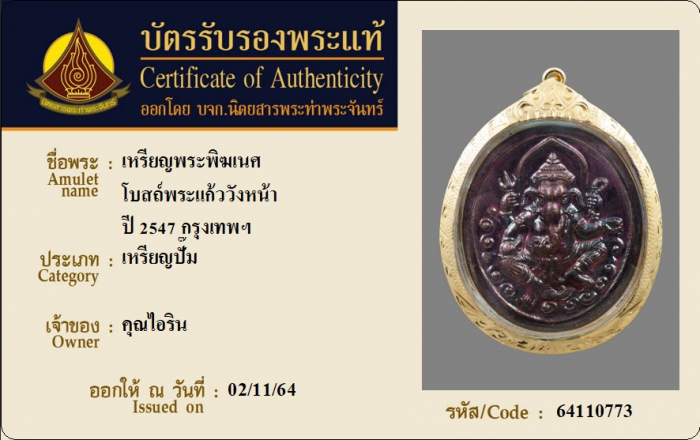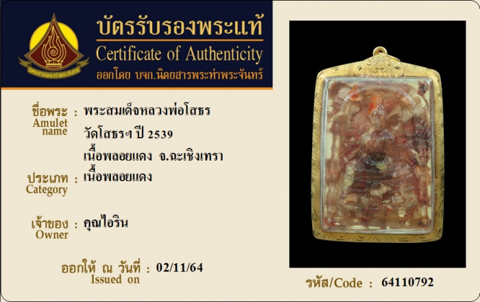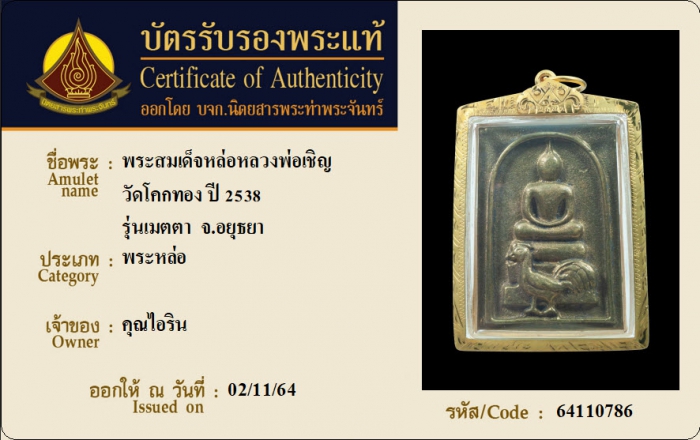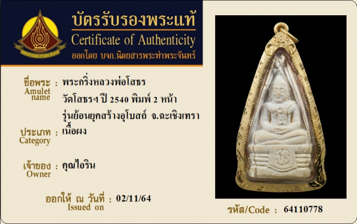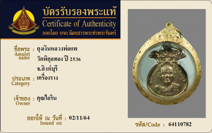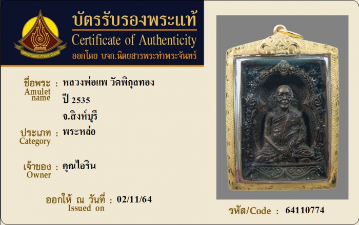 ค้นหาใบการันตีพระแท้