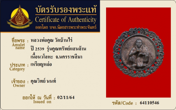 ค้นหาใบการันตีพระแท้