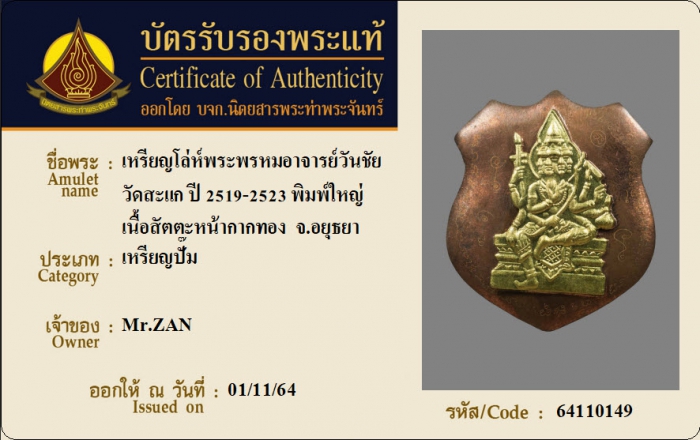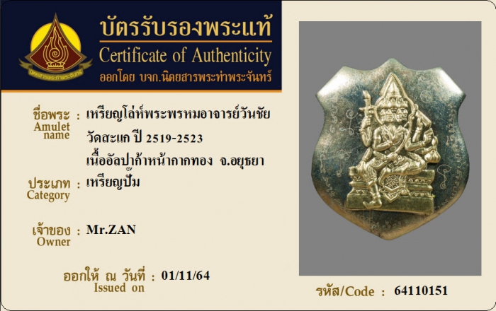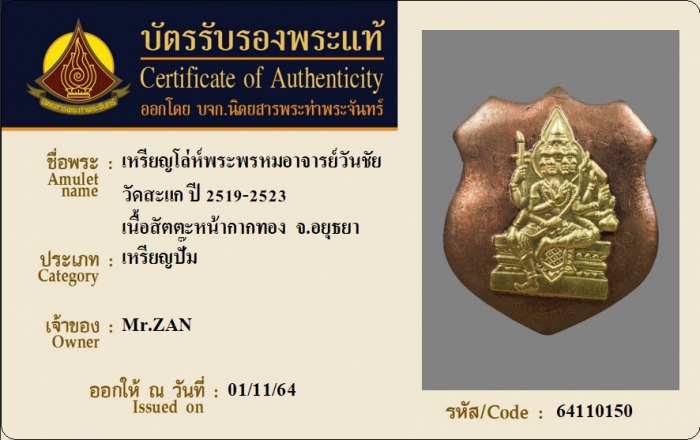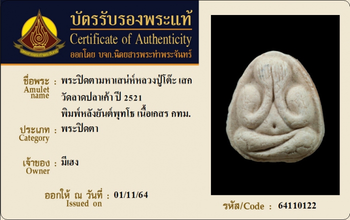 ค้นหาใบการันตีพระแท้
