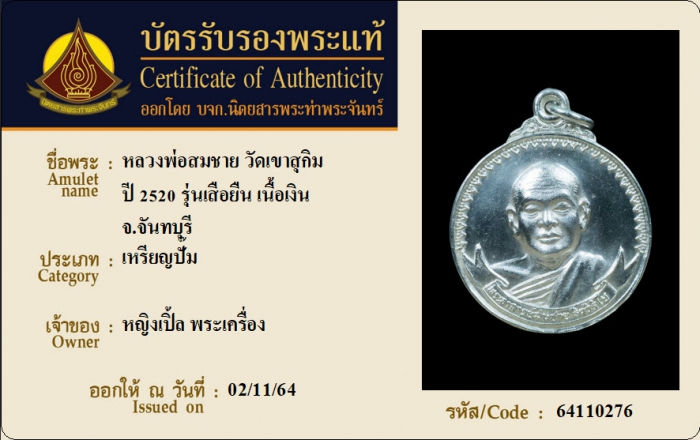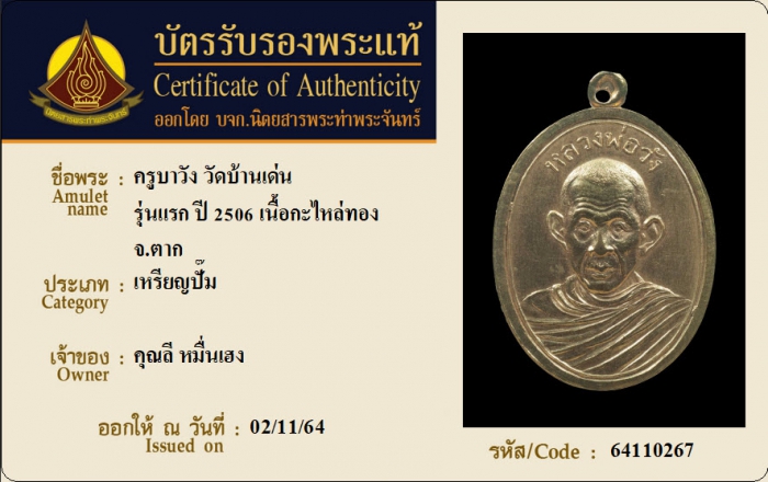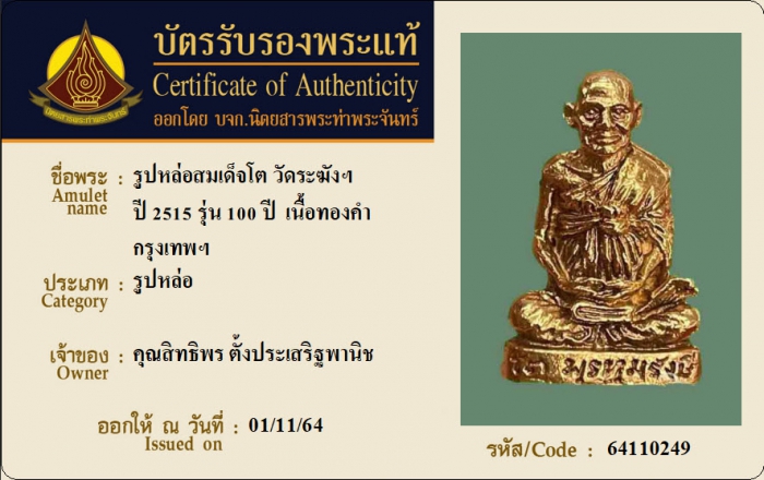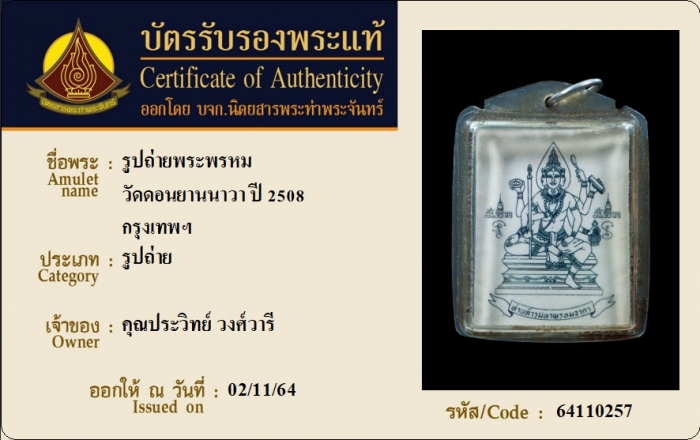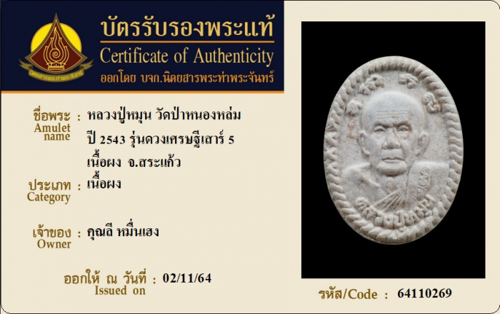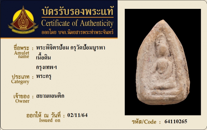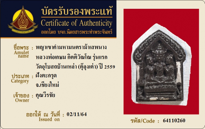 ค้นหาใบการันตีพระแท้
