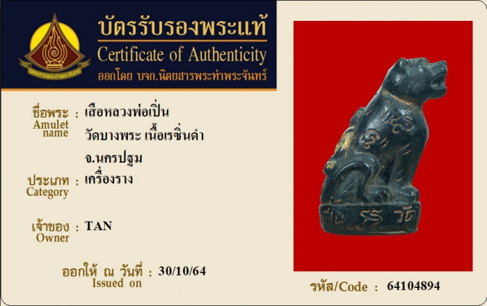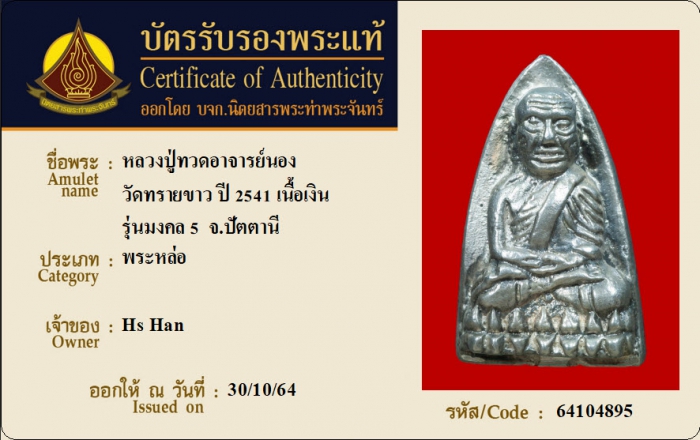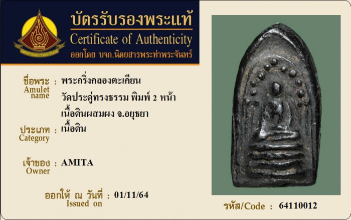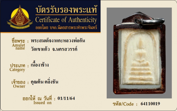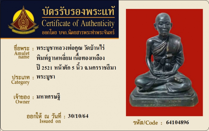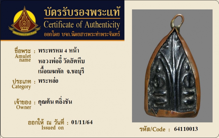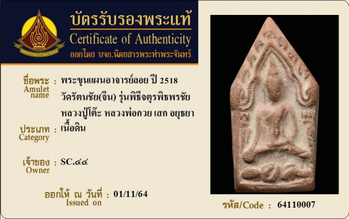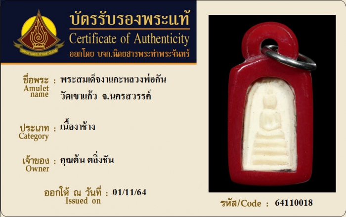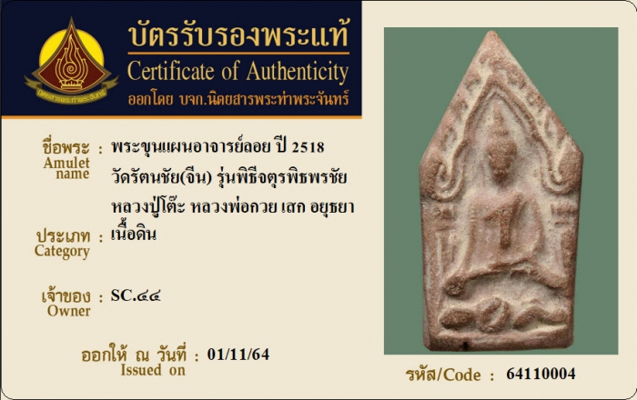 ค้นหาใบการันตีพระแท้