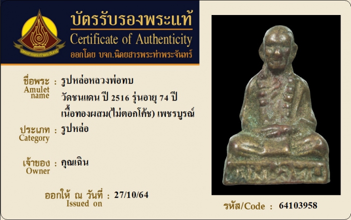 ค้นหาใบการันตีพระแท้