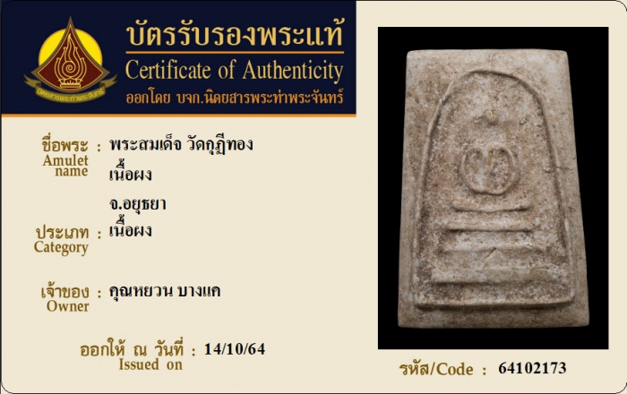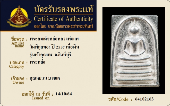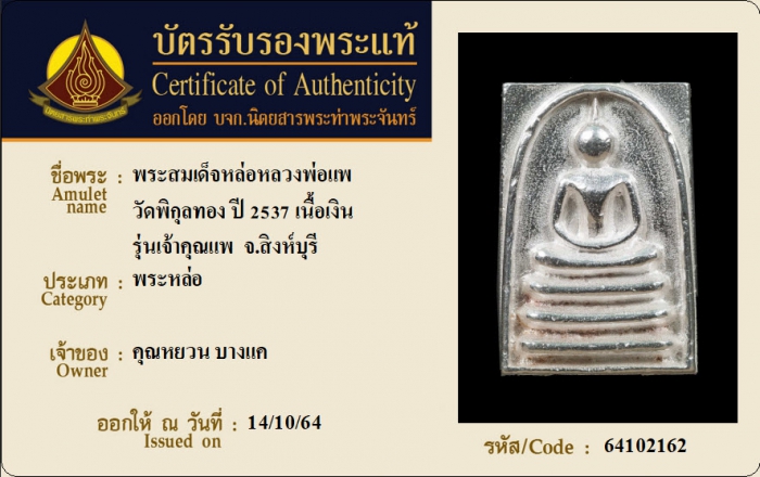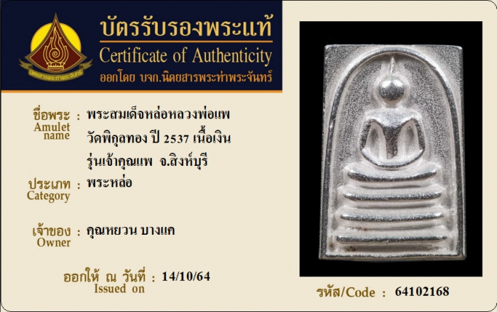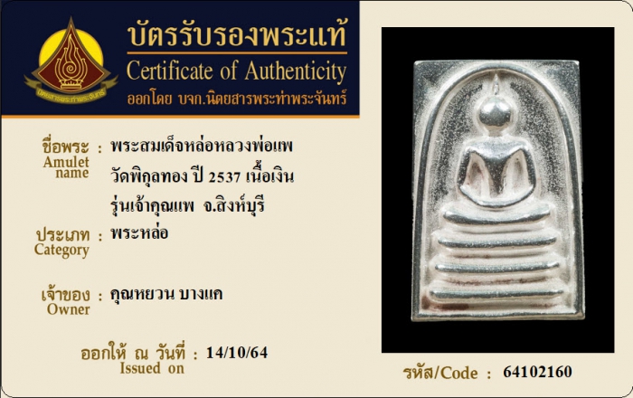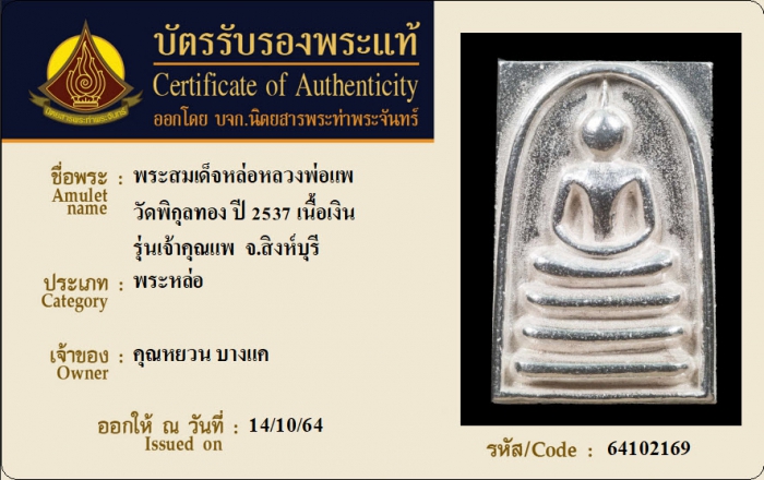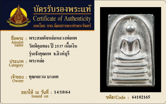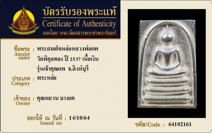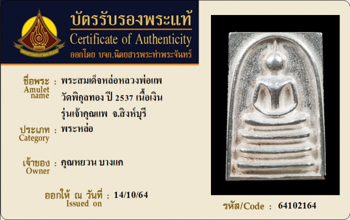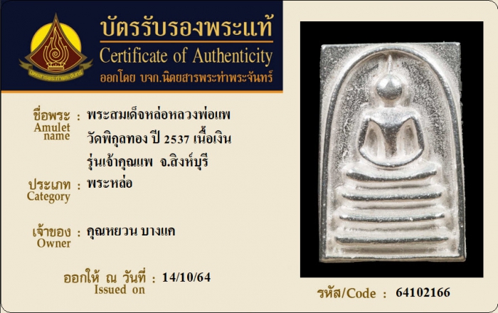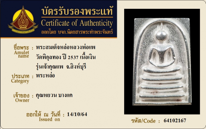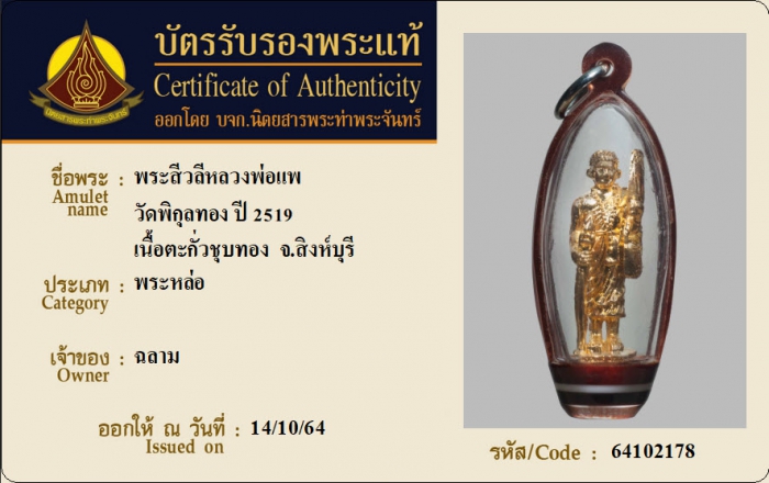 ค้นหาใบการันตีพระแท้