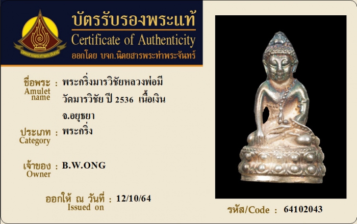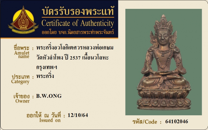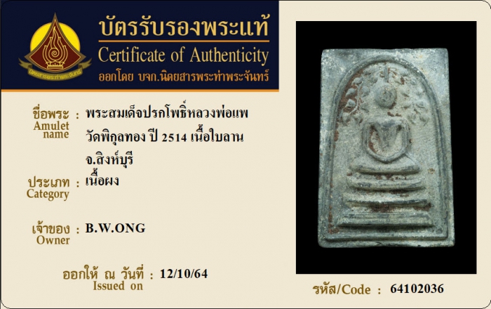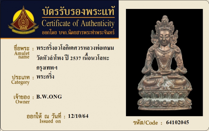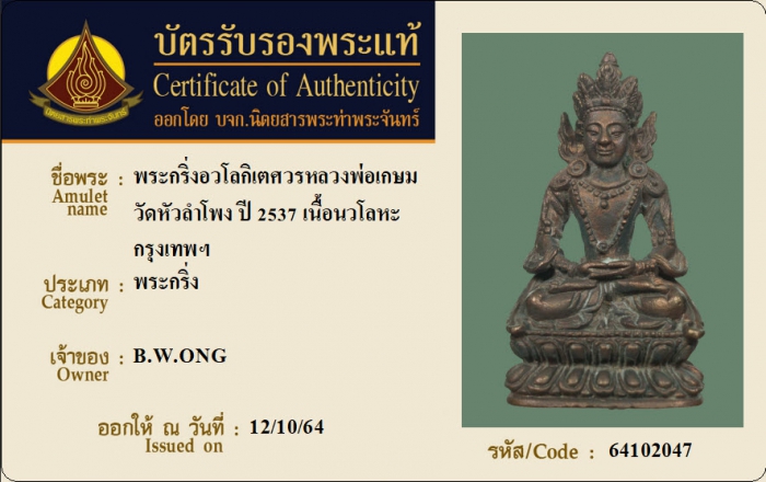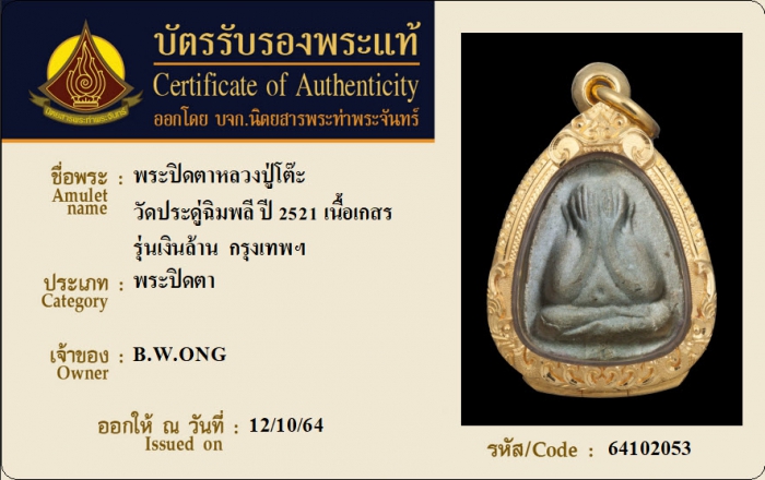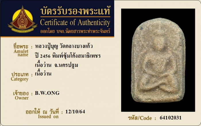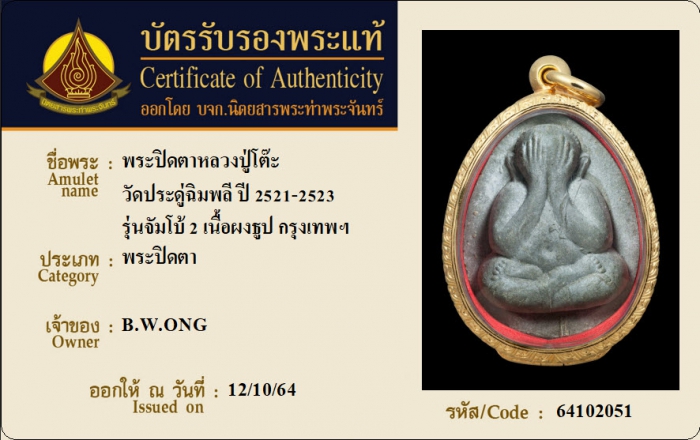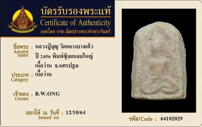 ค้นหาใบการันตีพระแท้