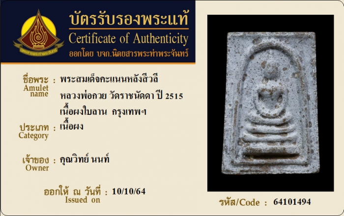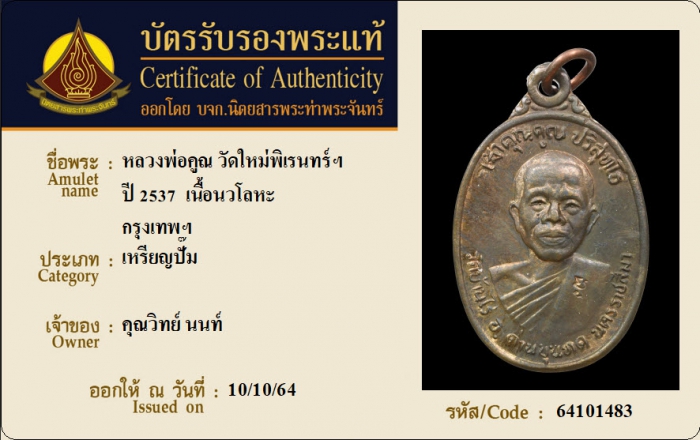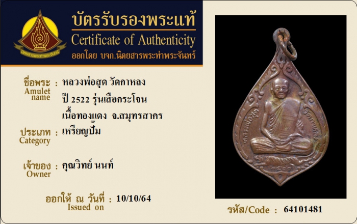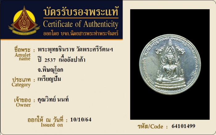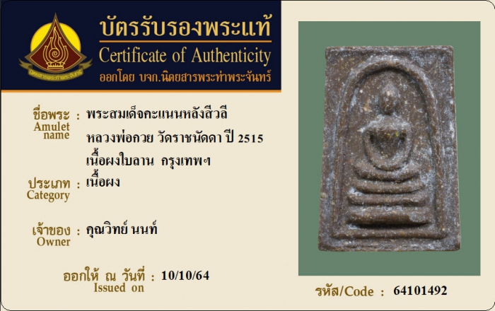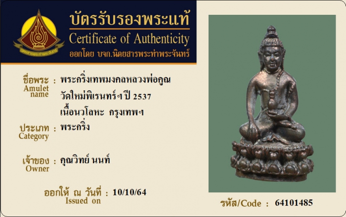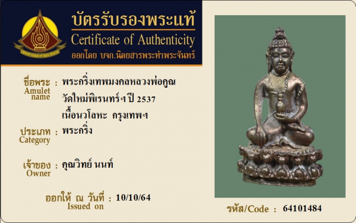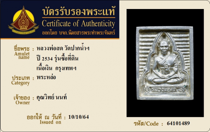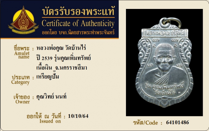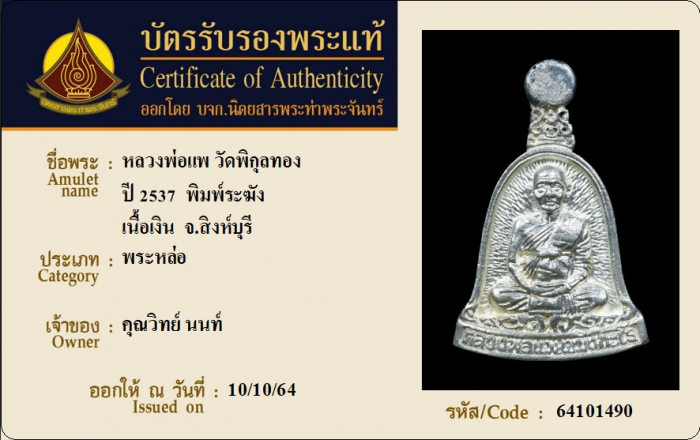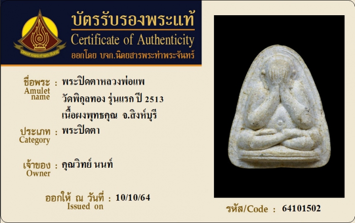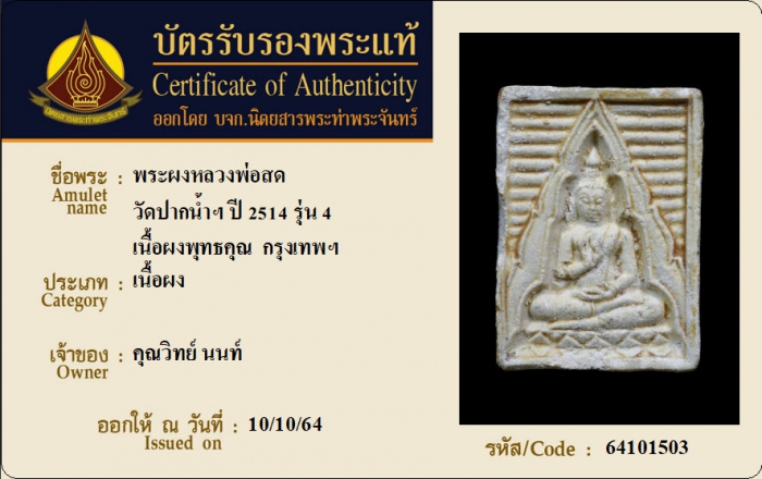 ค้นหาใบการันตีพระแท้