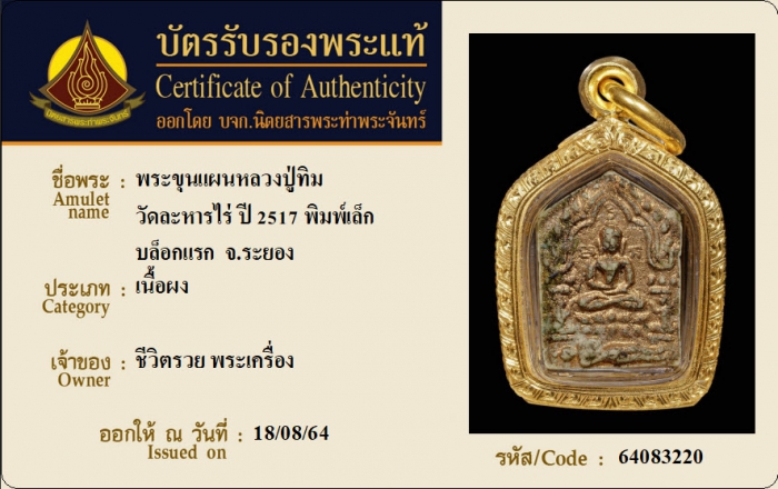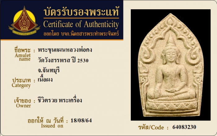 ค้นหาใบการันตีพระแท้