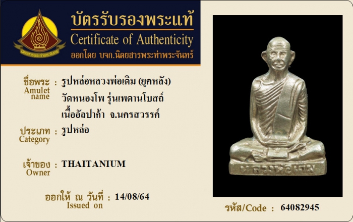 ค้นหาใบการันตีพระแท้
