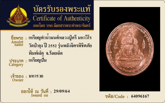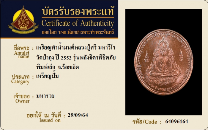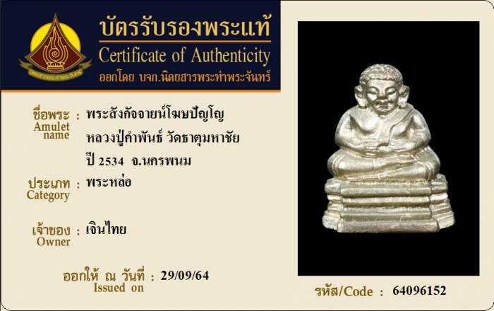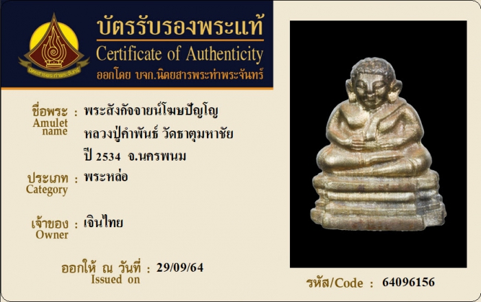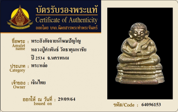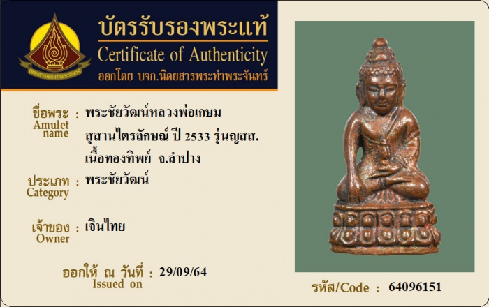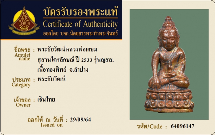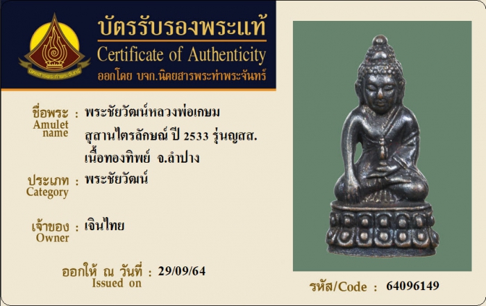 ค้นหาใบการันตีพระแท้