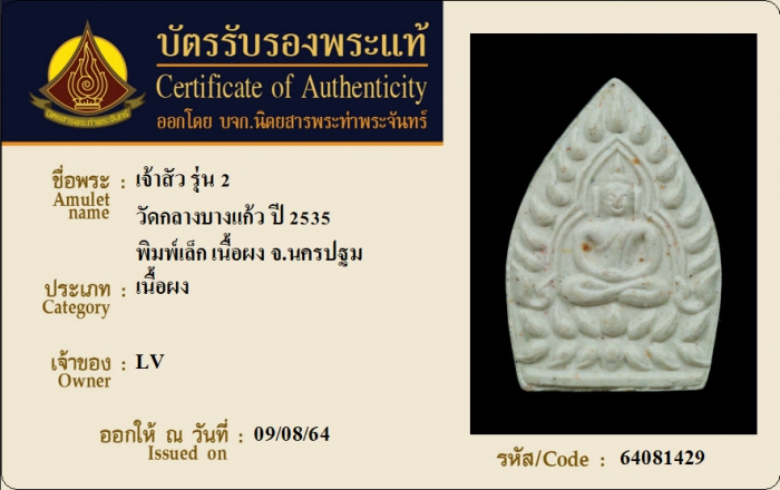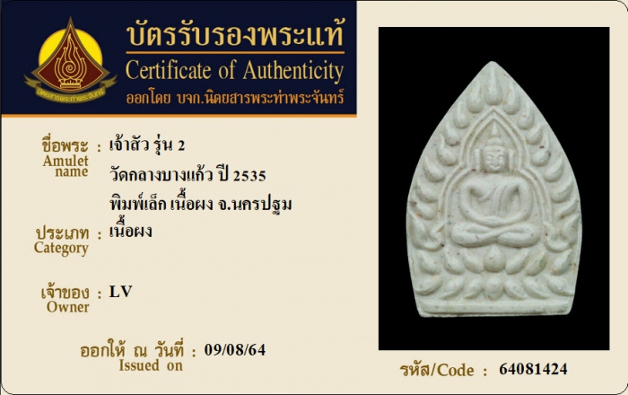 ค้นหาใบการันตีพระแท้