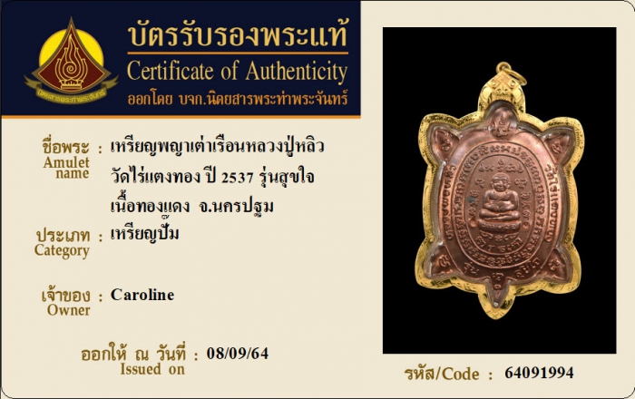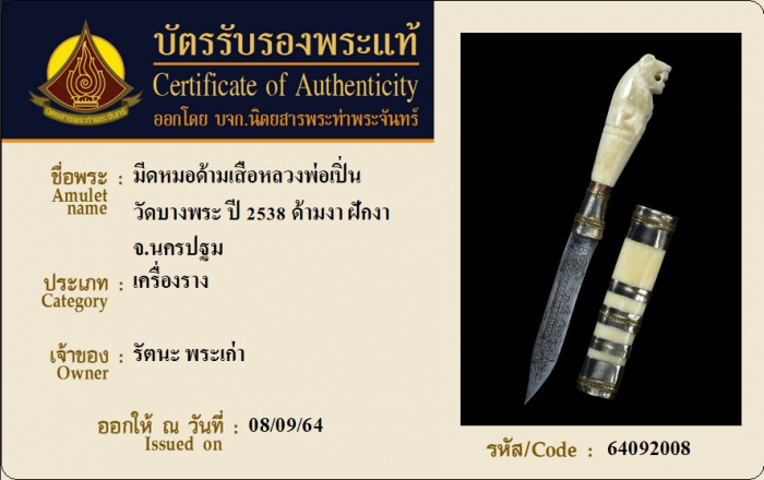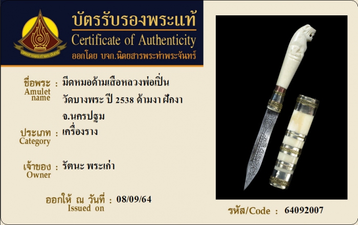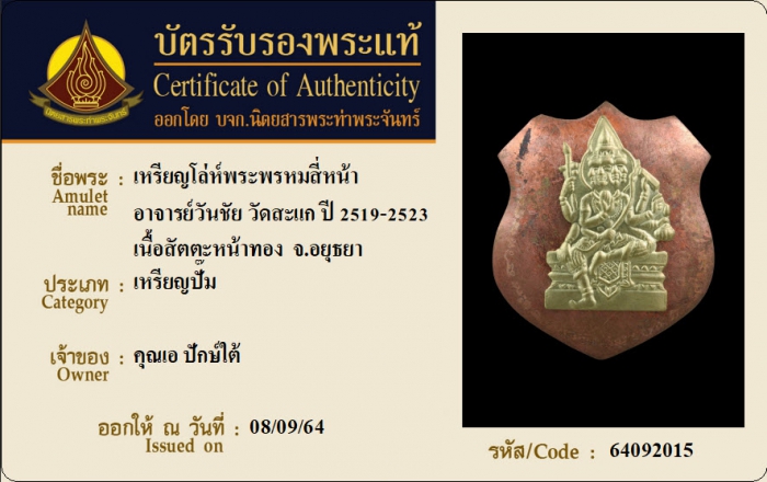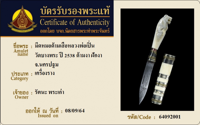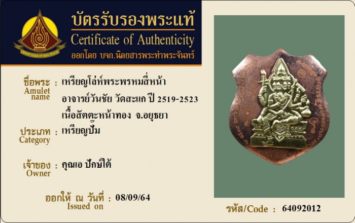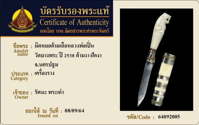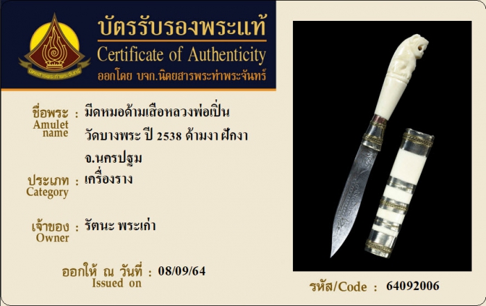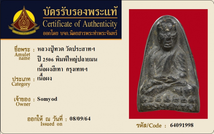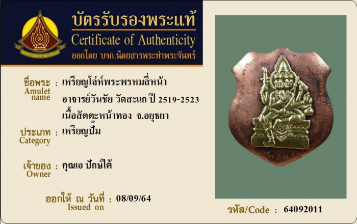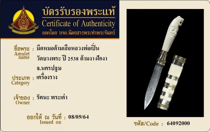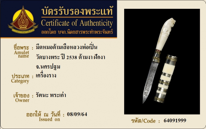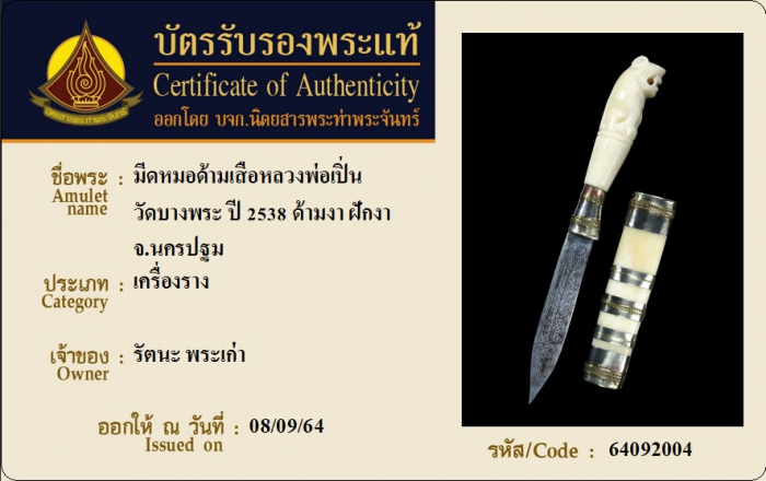 ค้นหาใบการันตีพระแท้