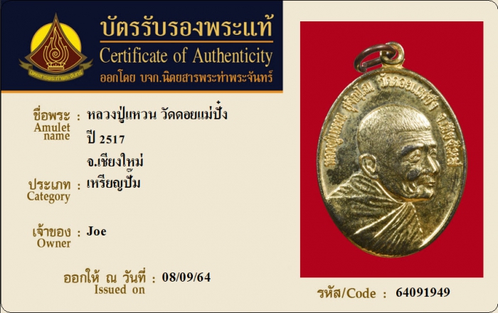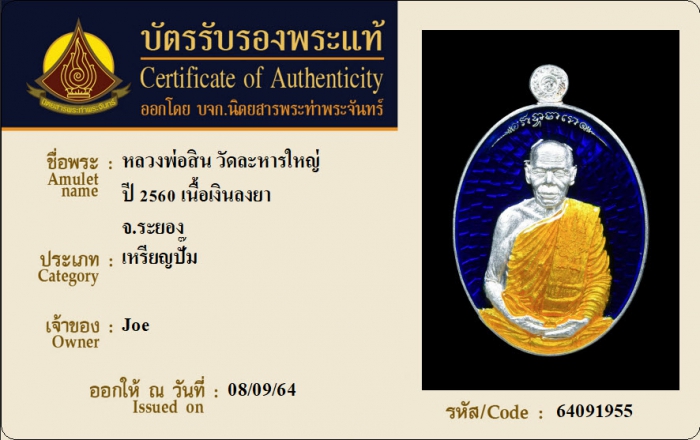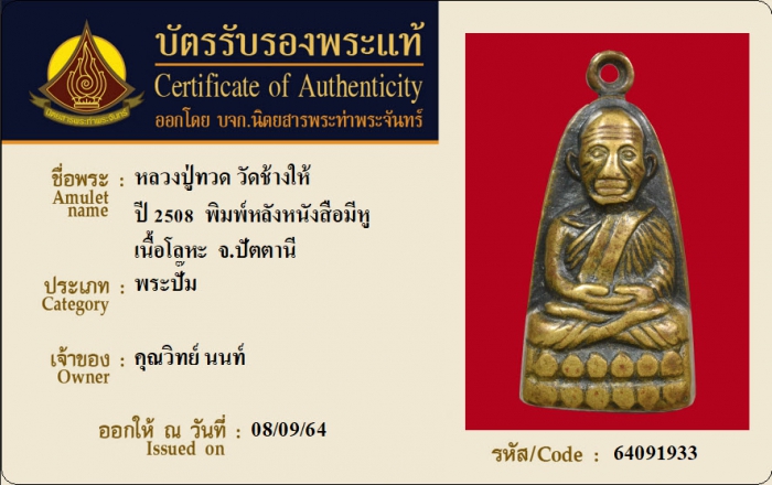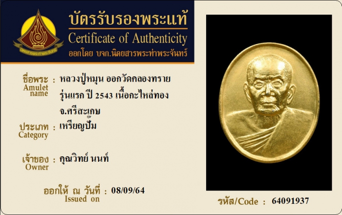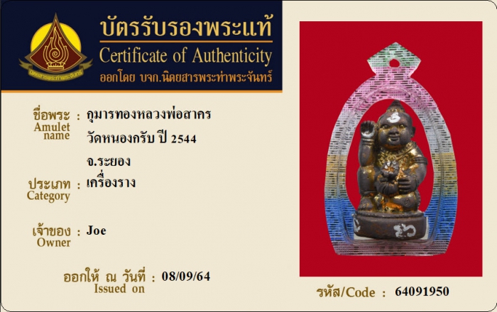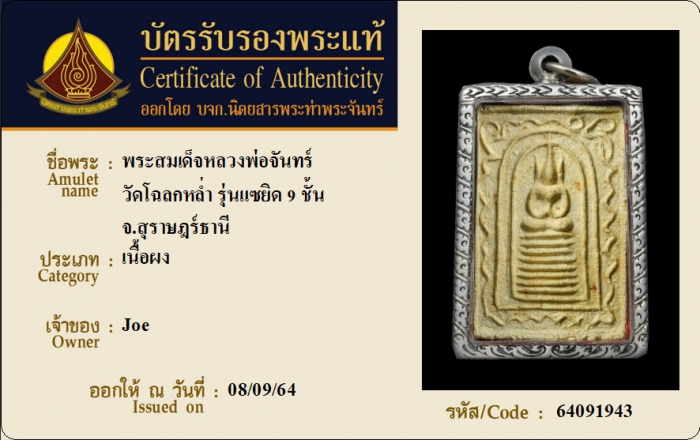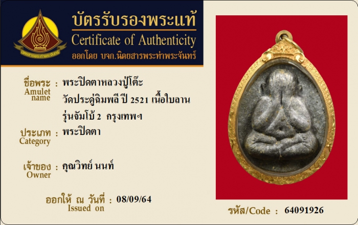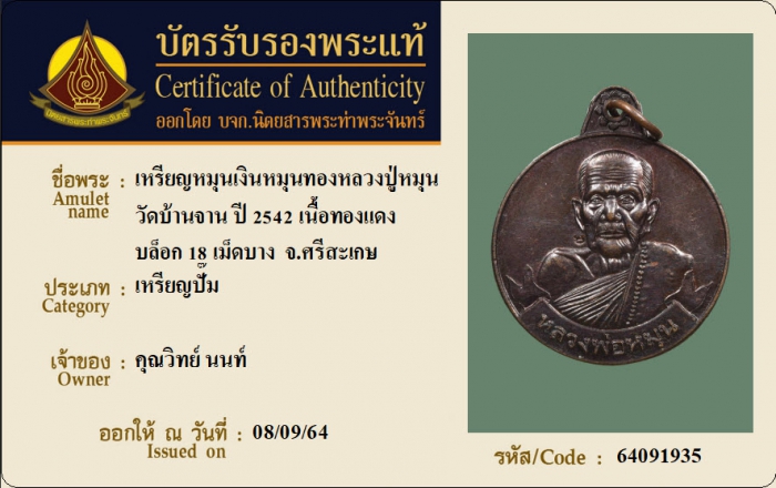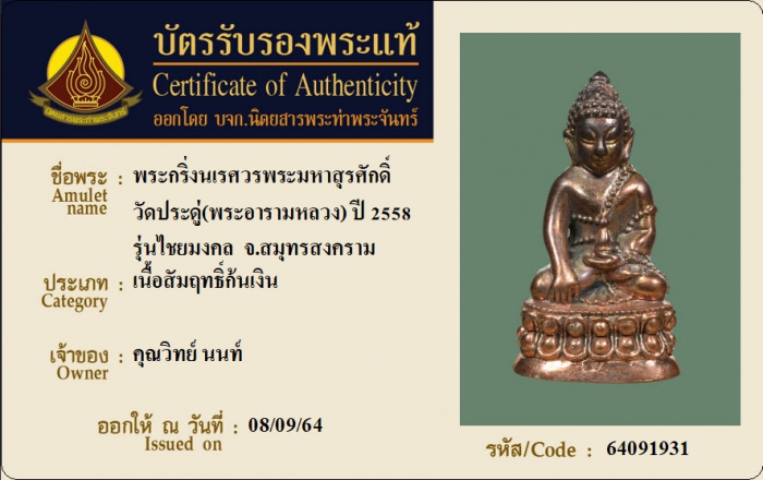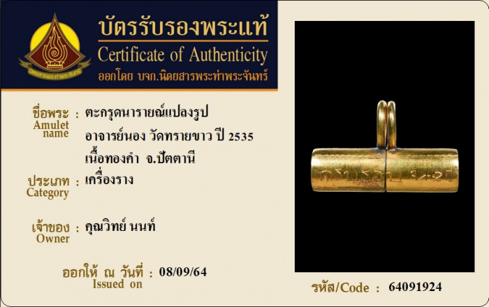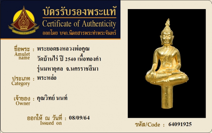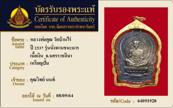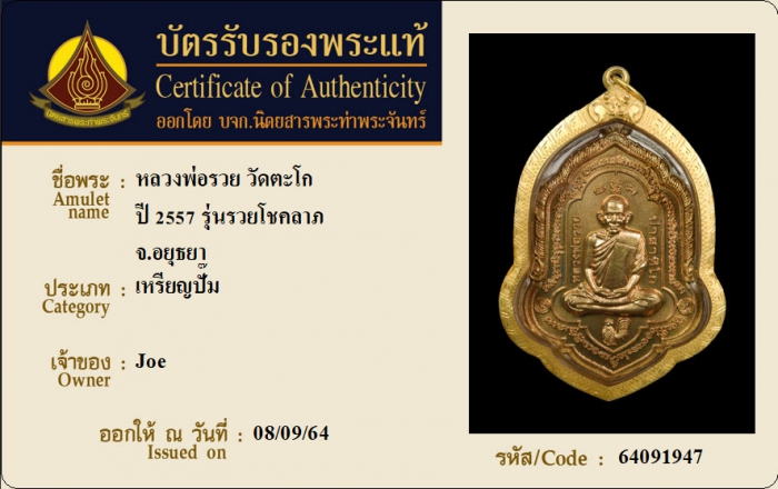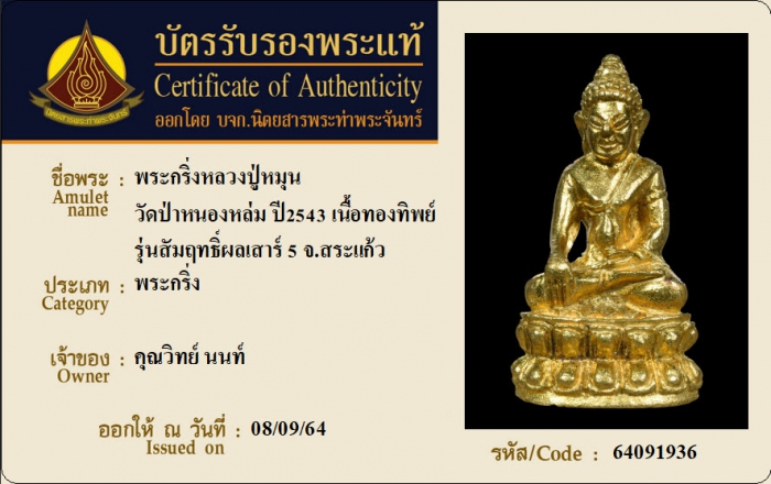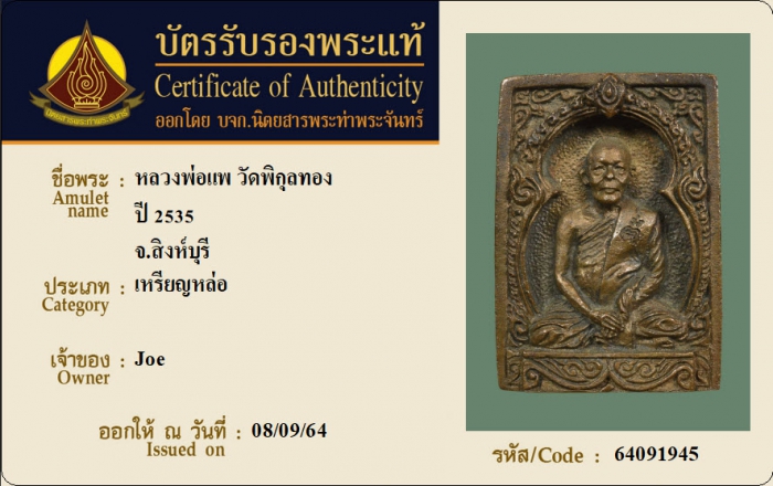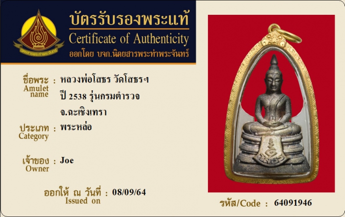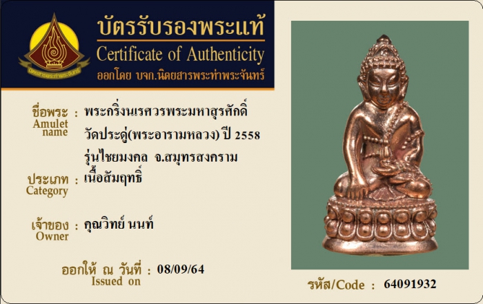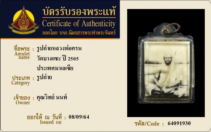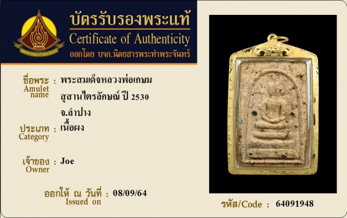ค้นหาใบการันตีพระแท้