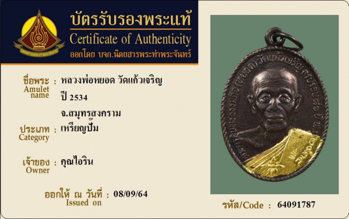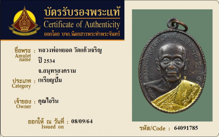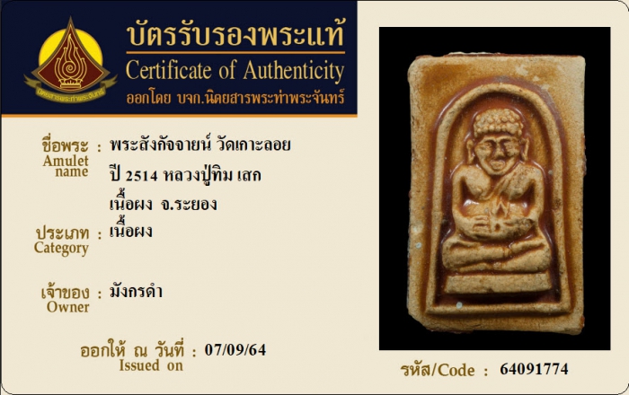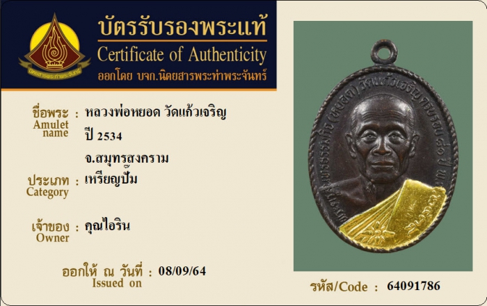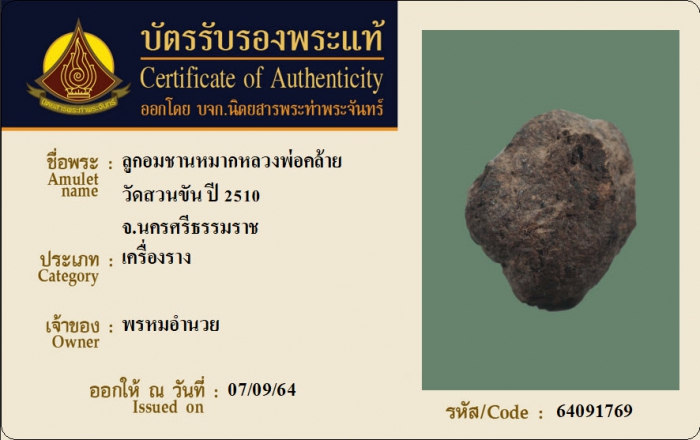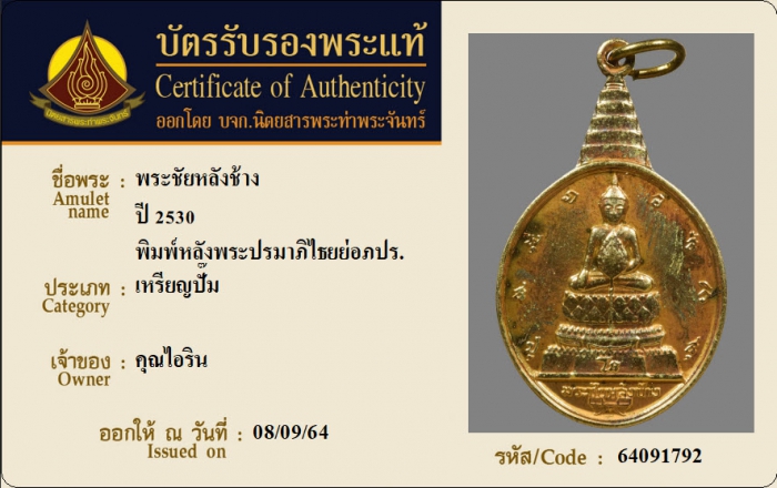 ค้นหาใบการันตีพระแท้