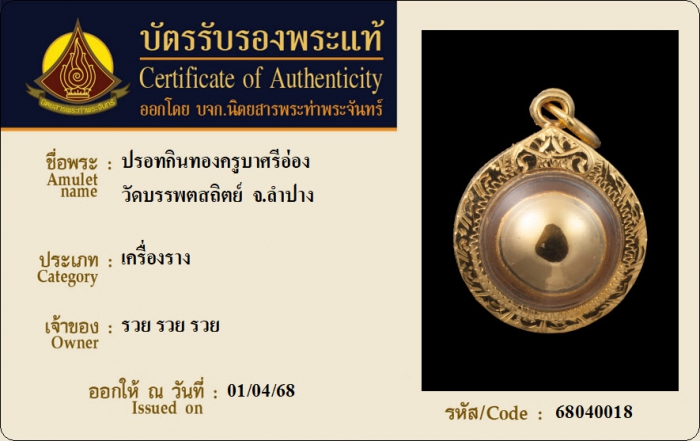ค้นหาใบการันตีพระแท้
