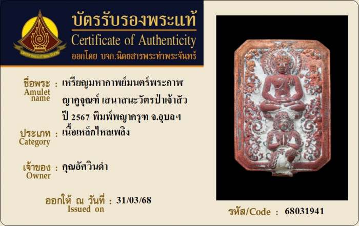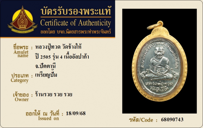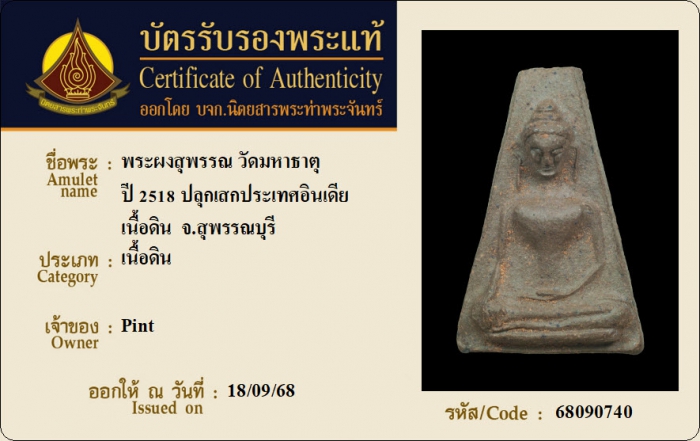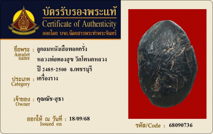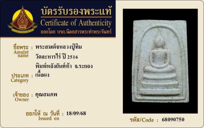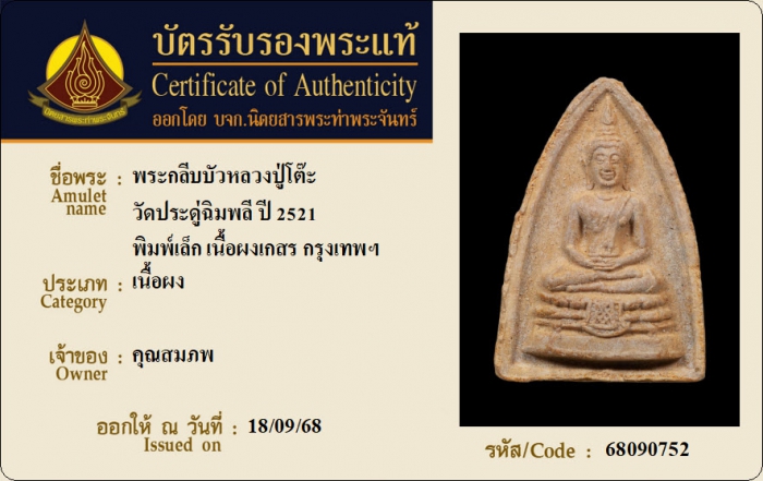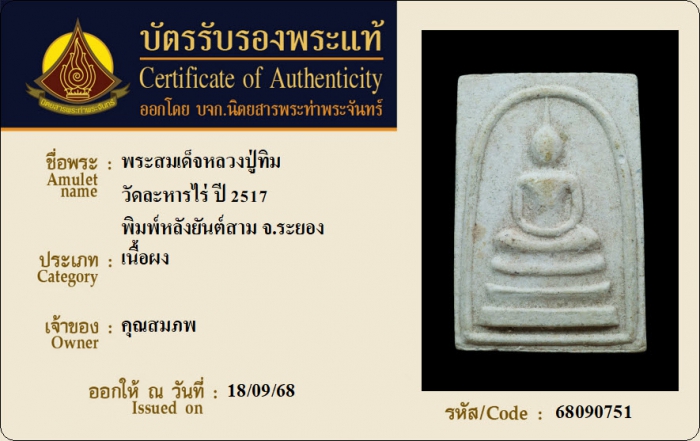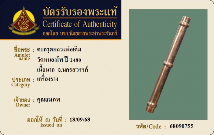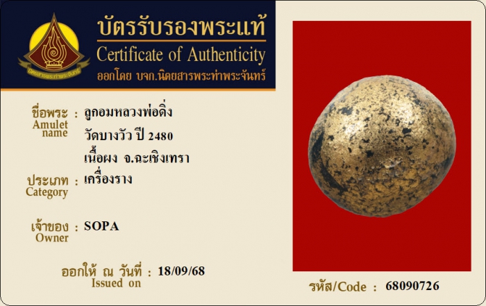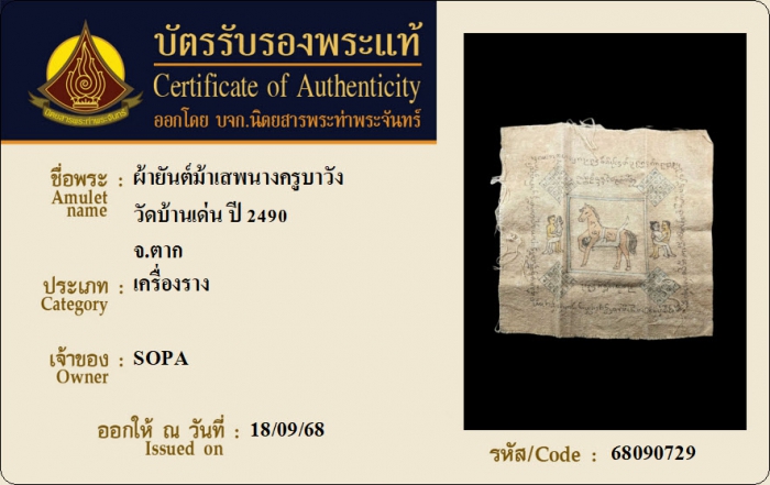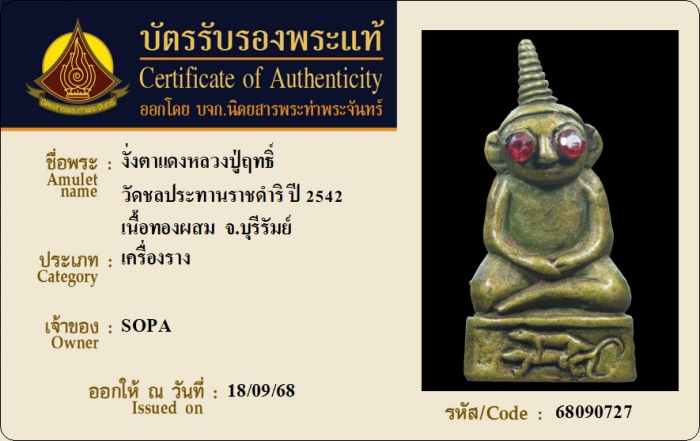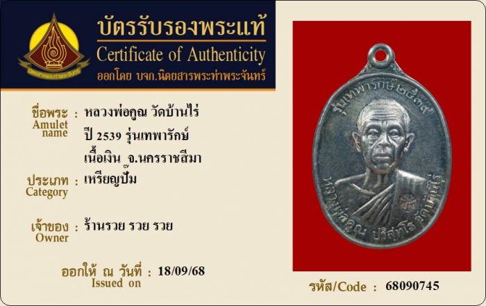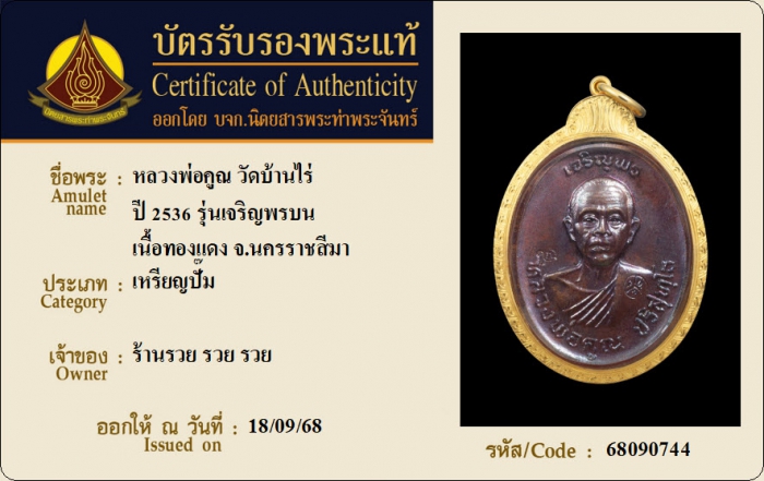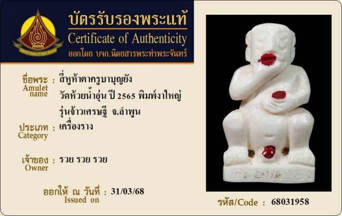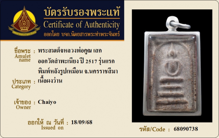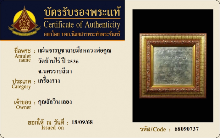 ค้นหาใบการันตีพระแท้