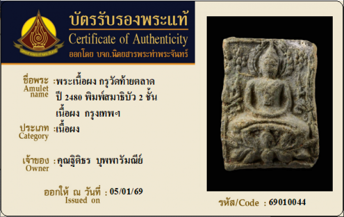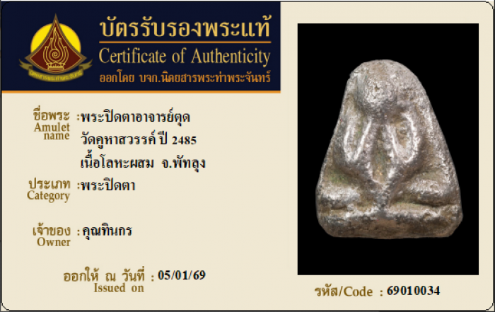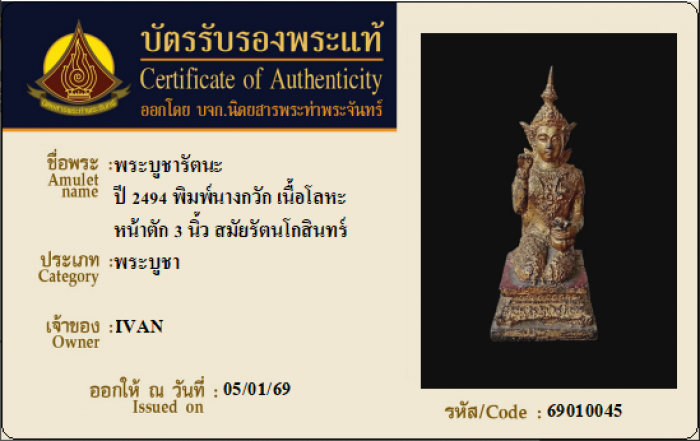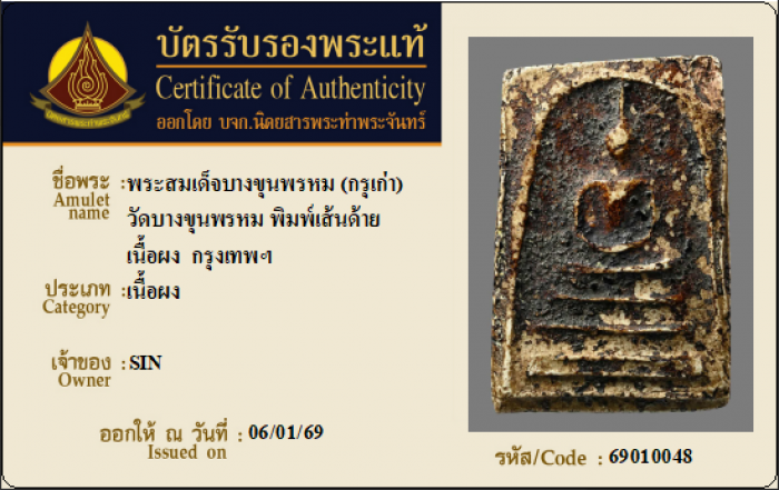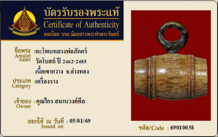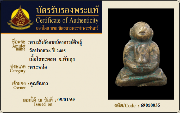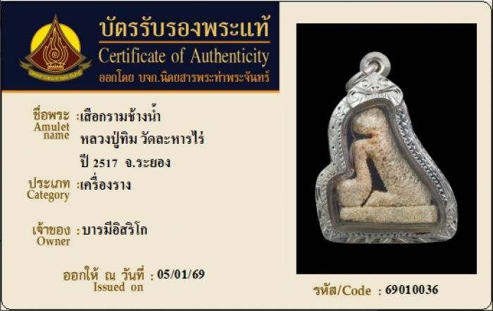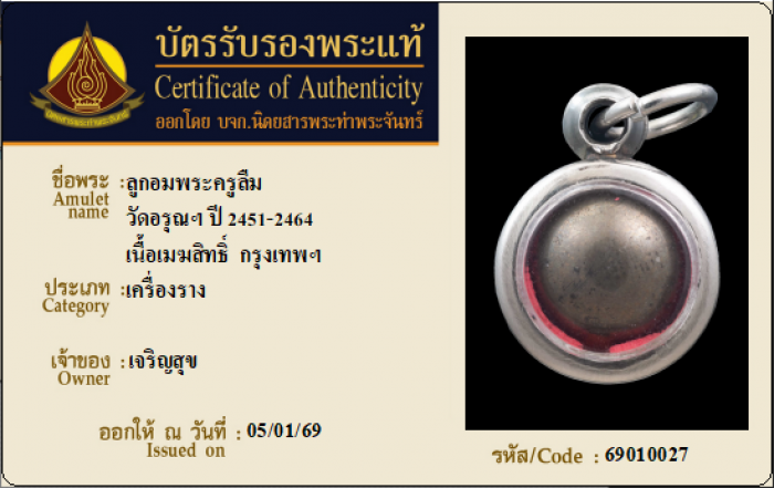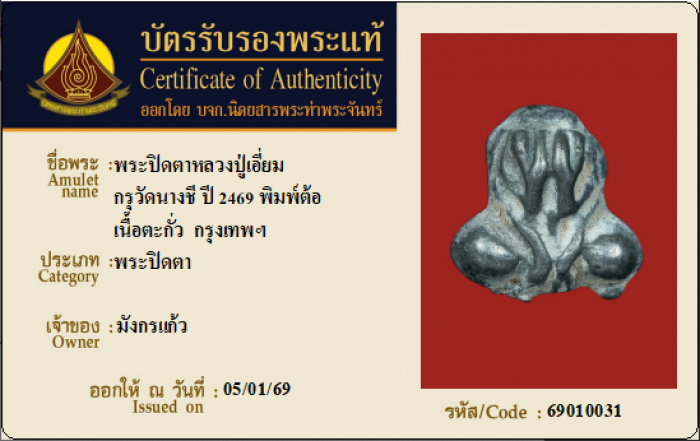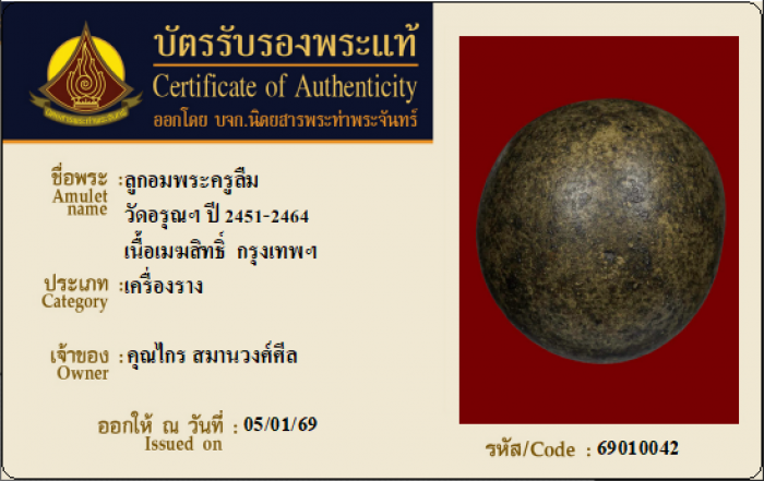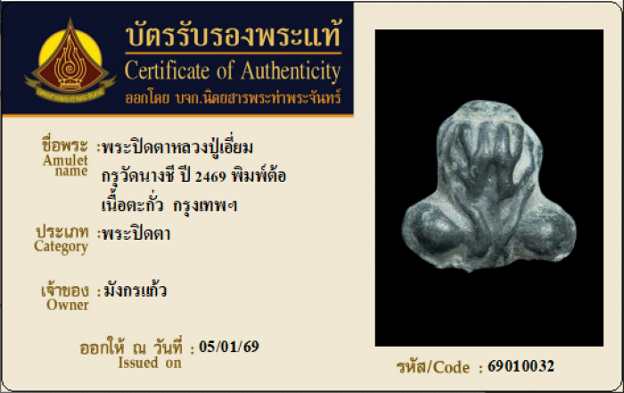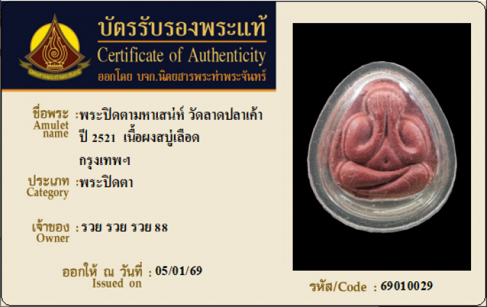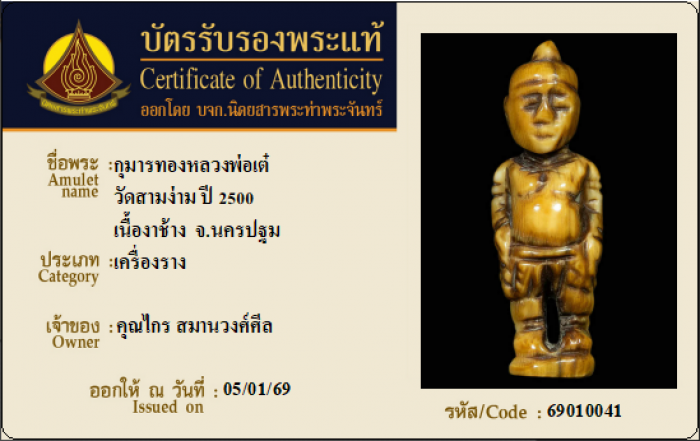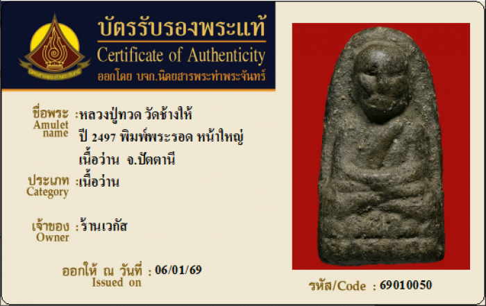 ค้นหาใบการันตีพระแท้