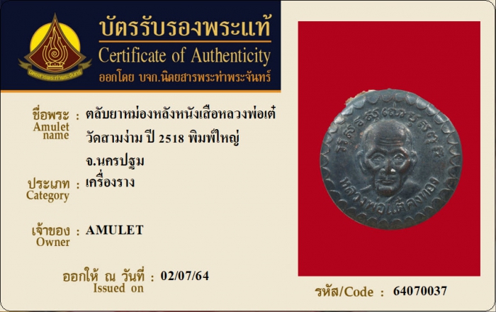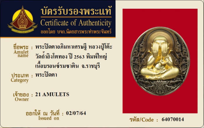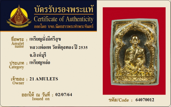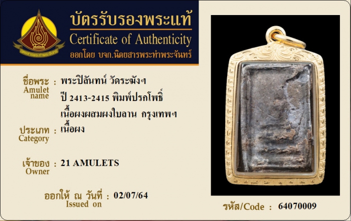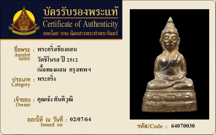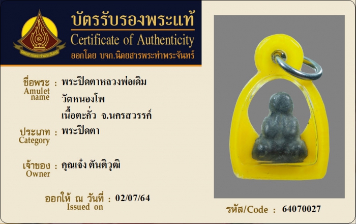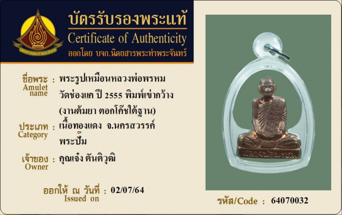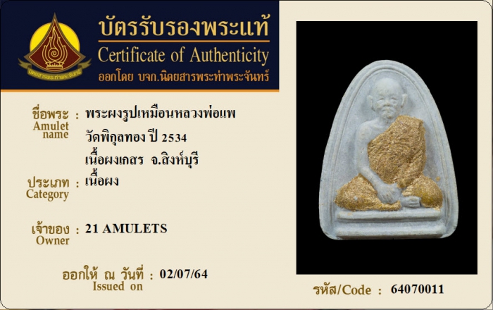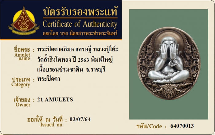ค้นหาใบการันตีพระแท้