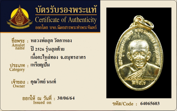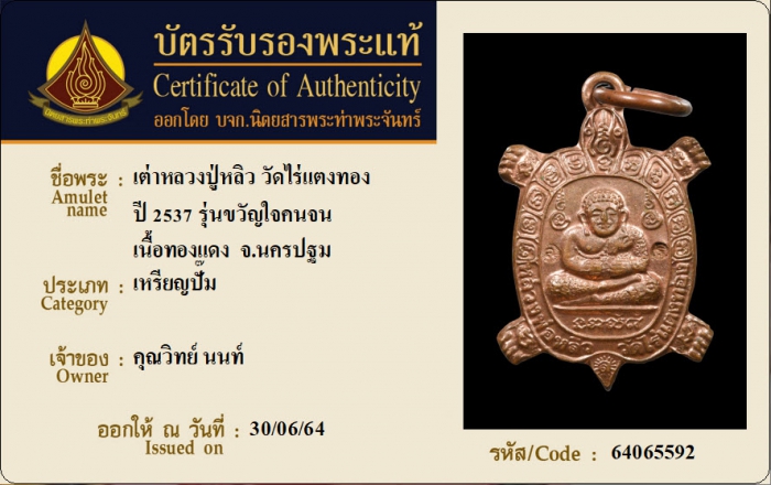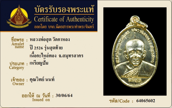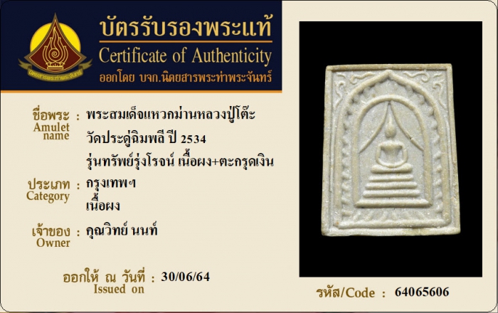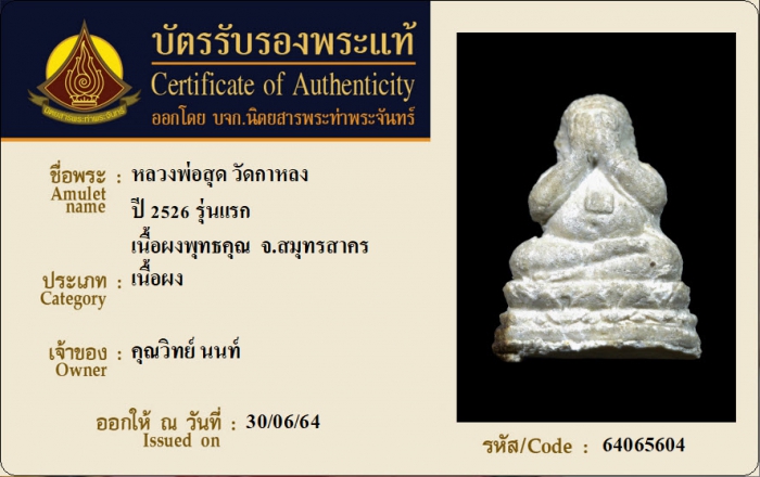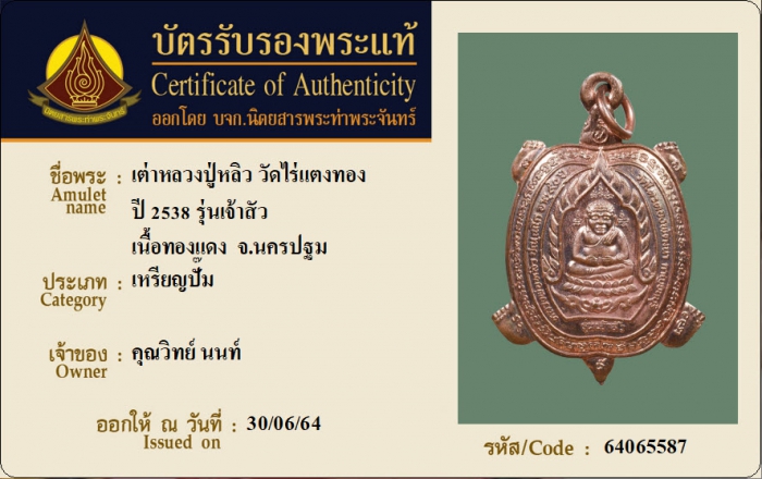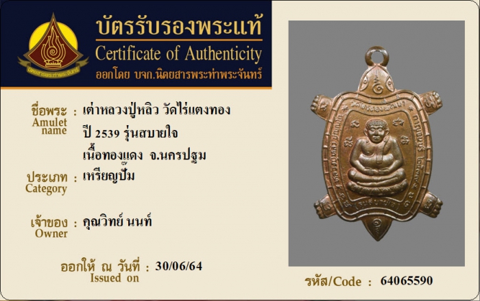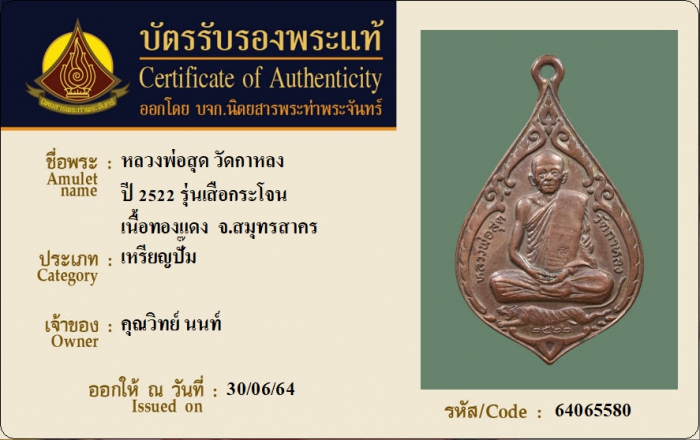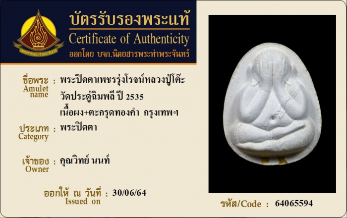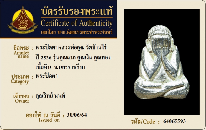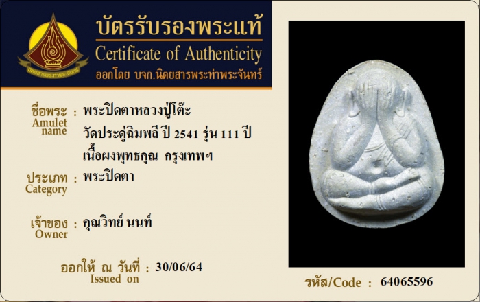 ค้นหาใบการันตีพระแท้
