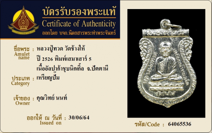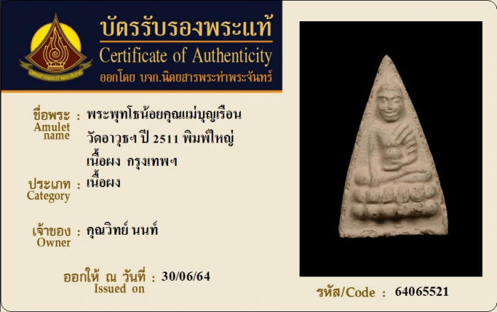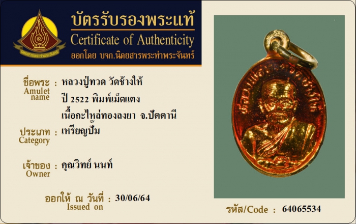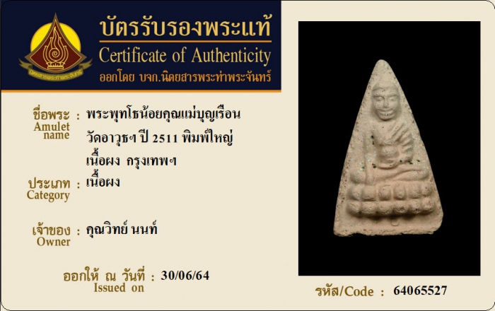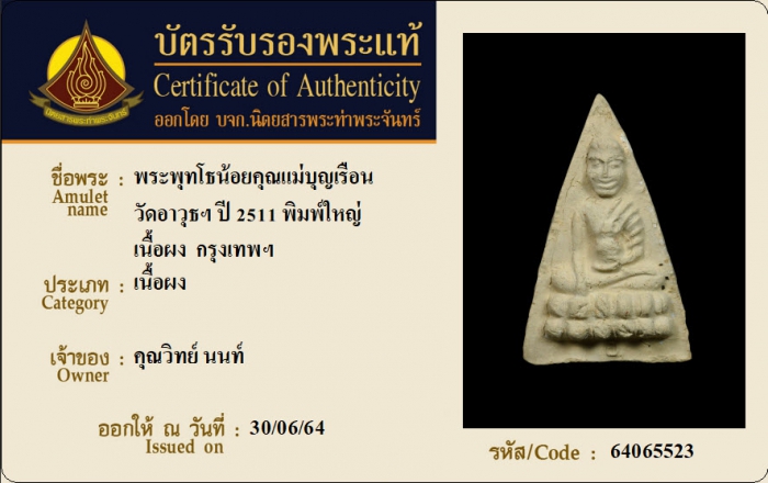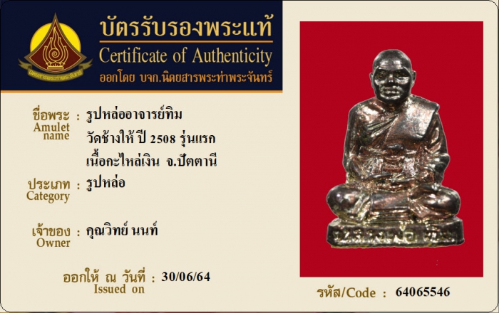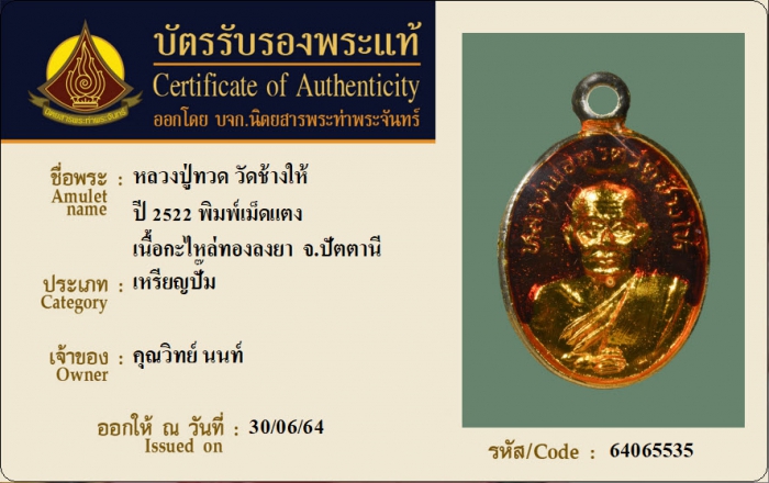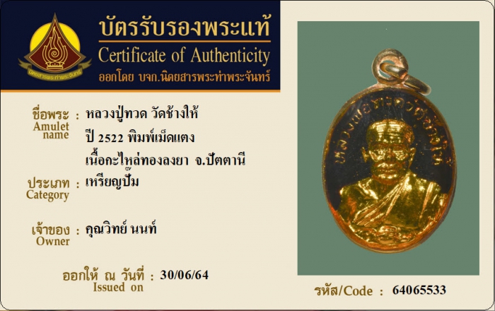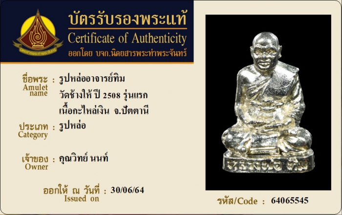 ค้นหาใบการันตีพระแท้