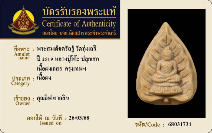 ค้นหาใบการันตีพระแท้