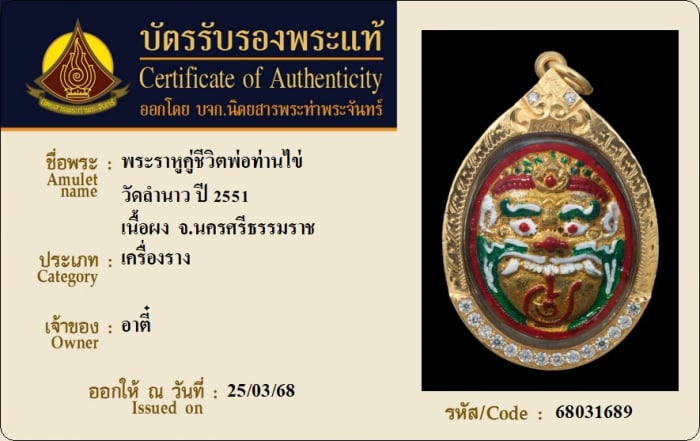 ค้นหาใบการันตีพระแท้