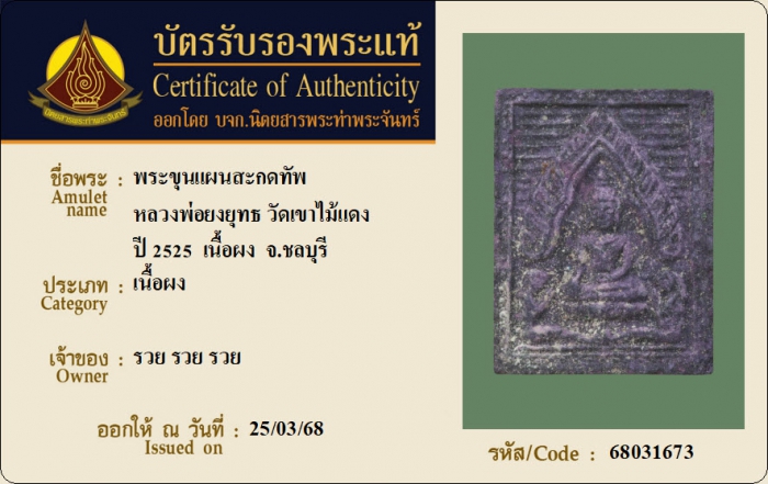 ค้นหาใบการันตีพระแท้