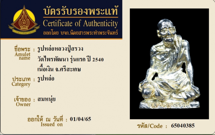 ค้นหาใบการันตีพระแท้