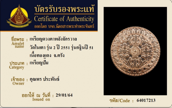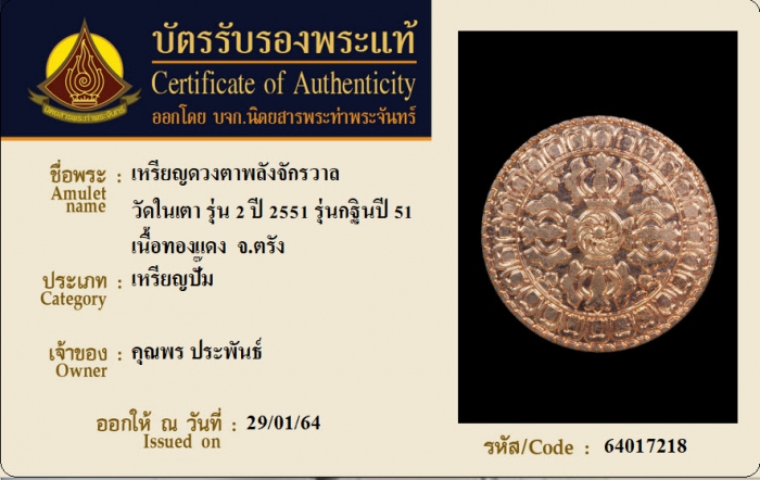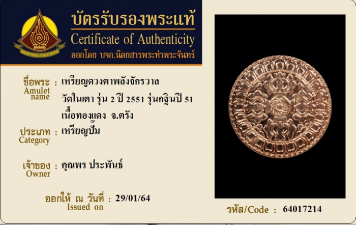 ค้นหาใบการันตีพระแท้
