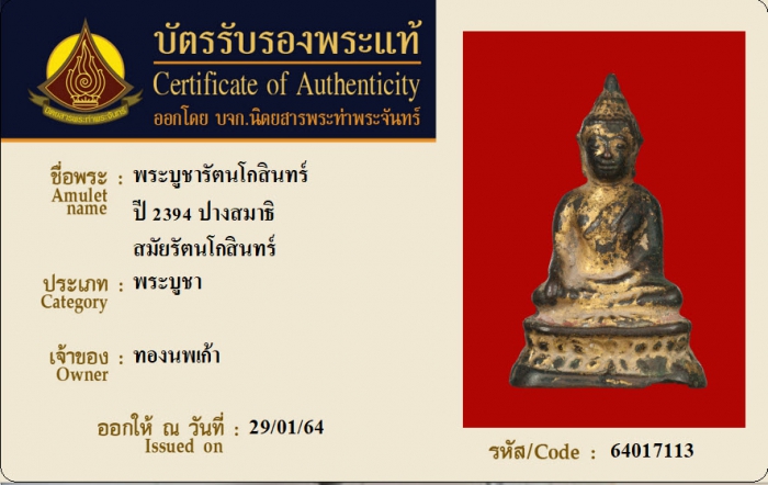 ค้นหาใบการันตีพระแท้