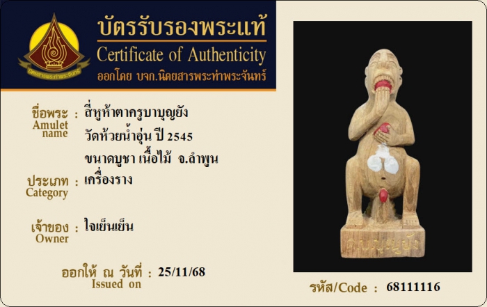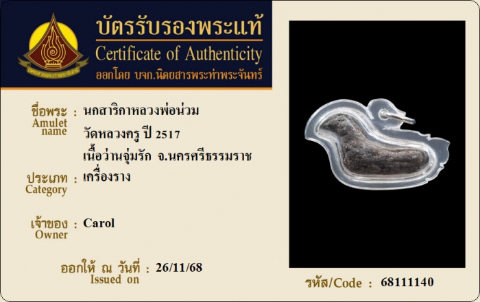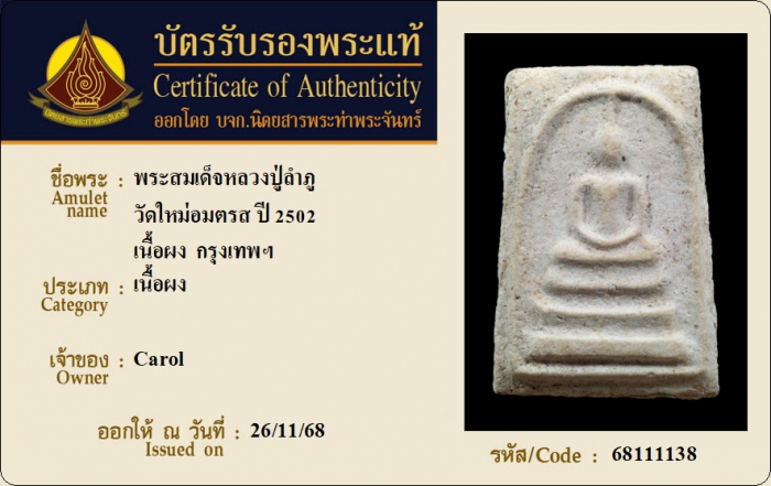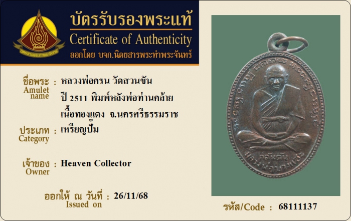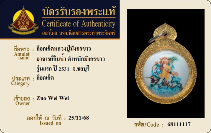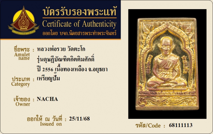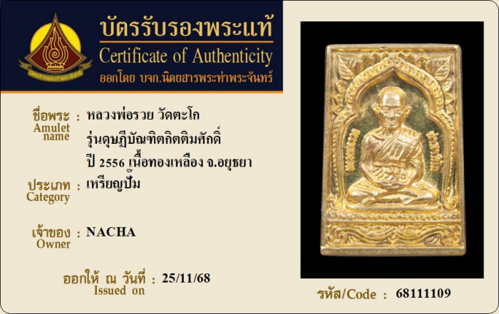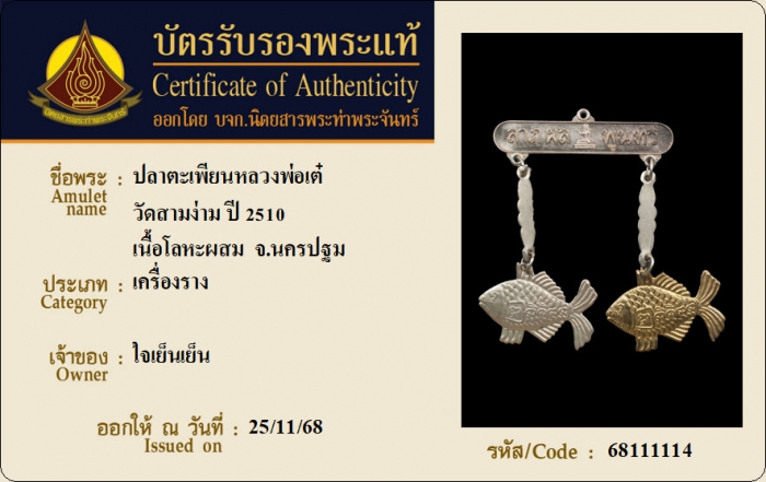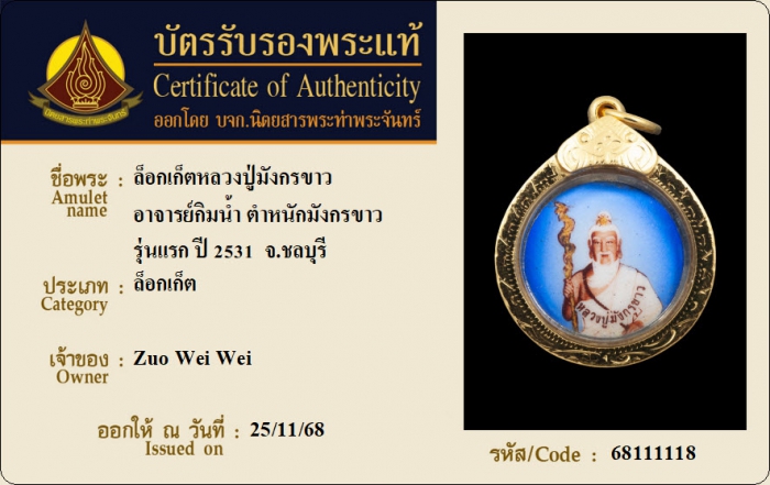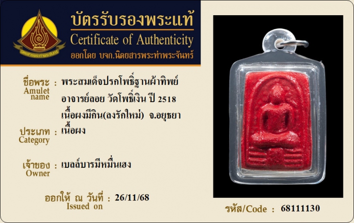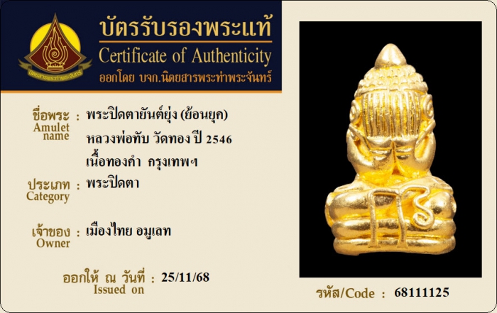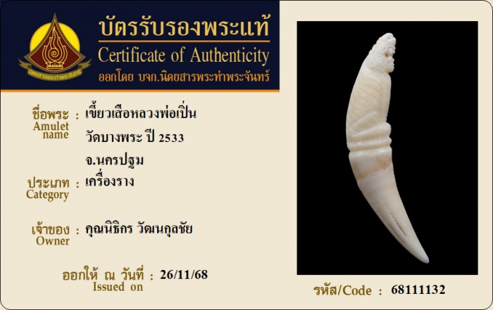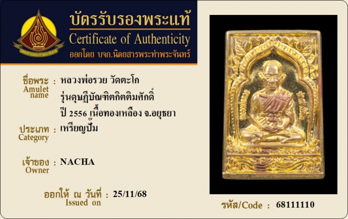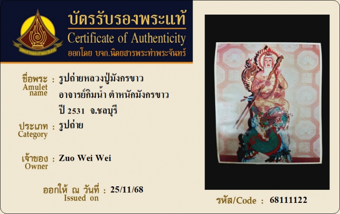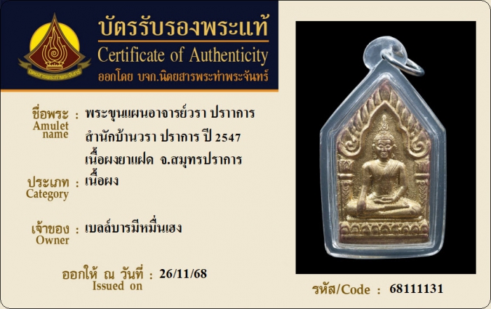 ค้นหาใบการันตีพระแท้