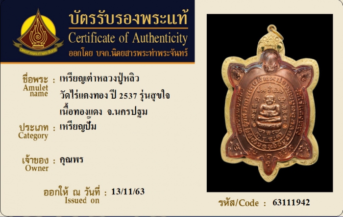 ค้นหาใบการันตีพระแท้