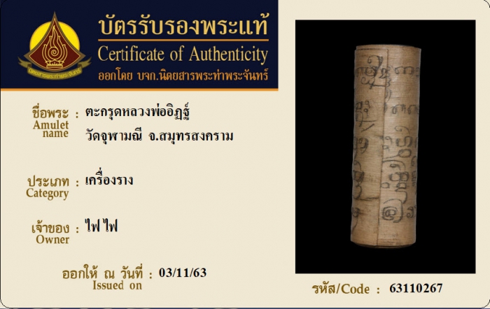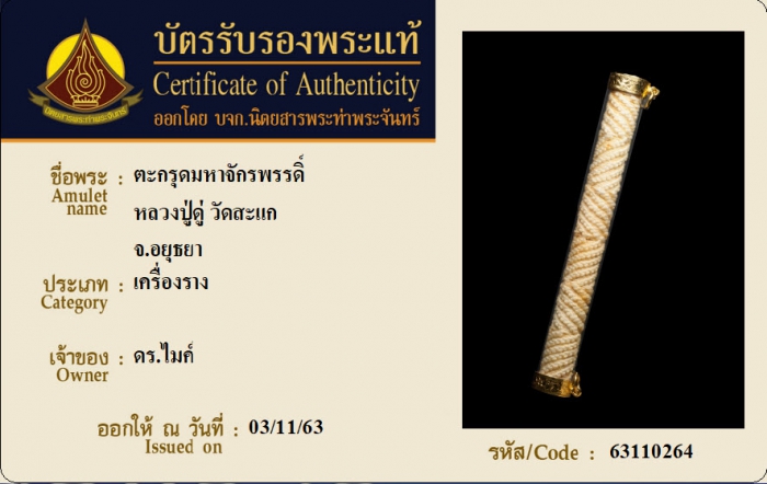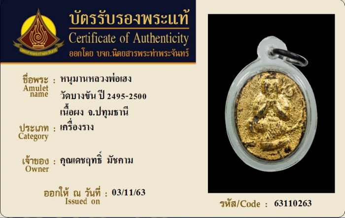 ค้นหาใบการันตีพระแท้