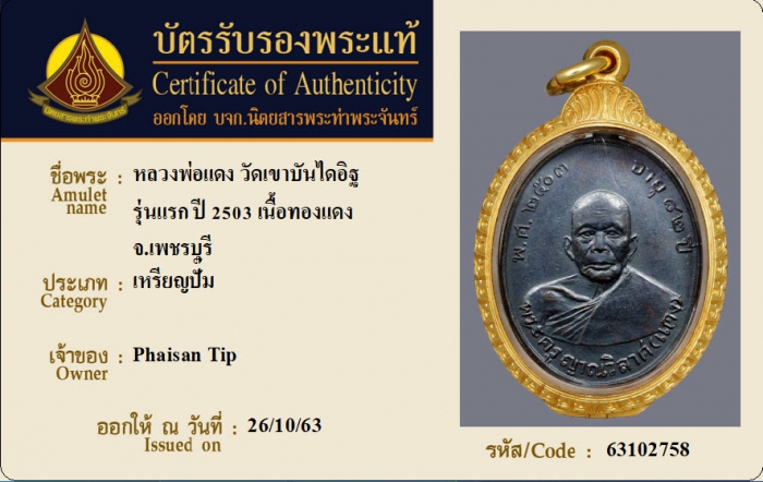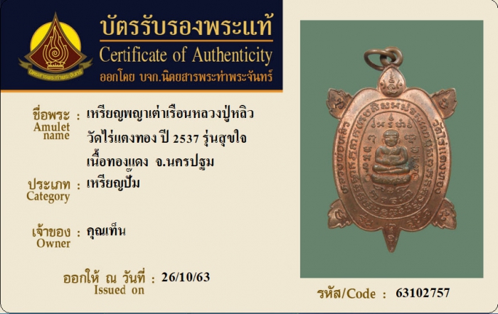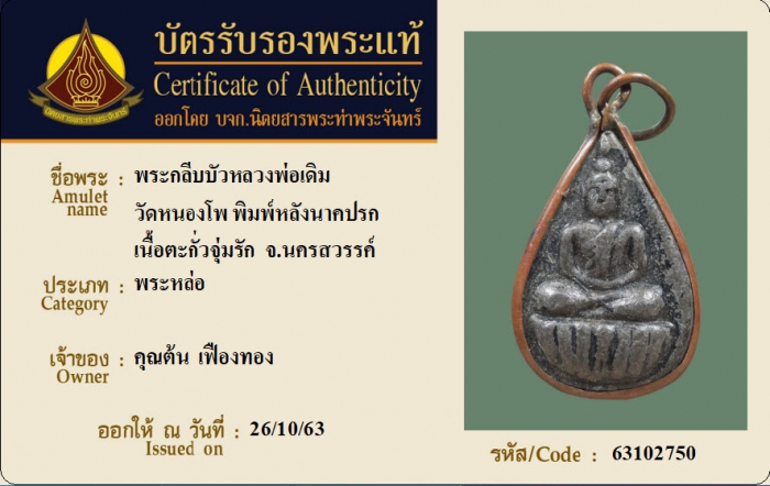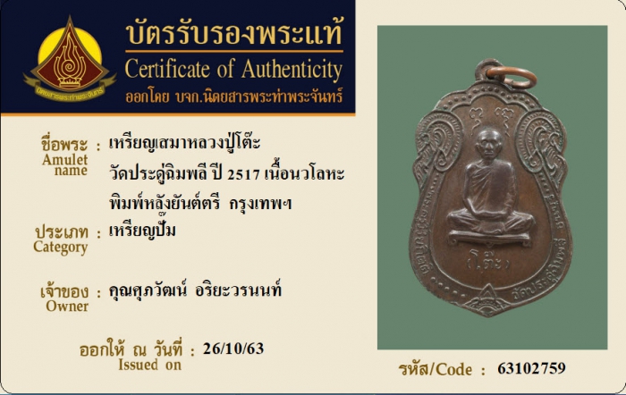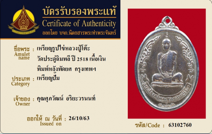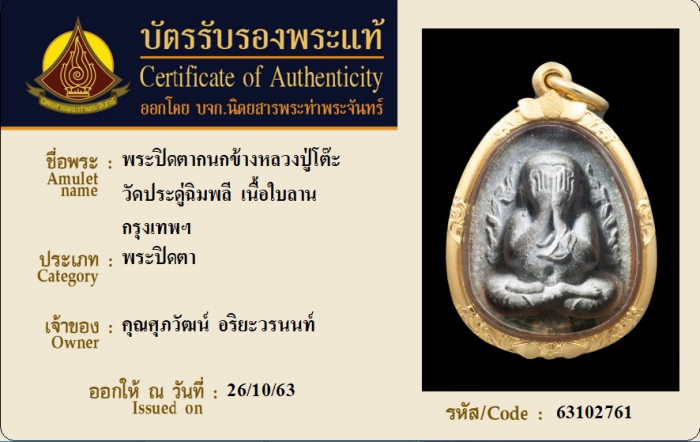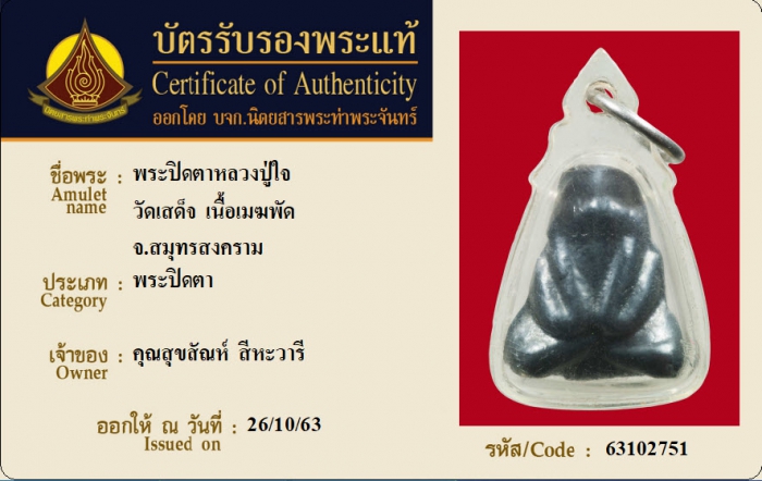 ค้นหาใบการันตีพระแท้