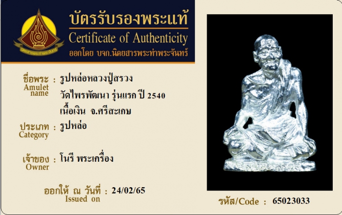 ค้นหาใบการันตีพระแท้