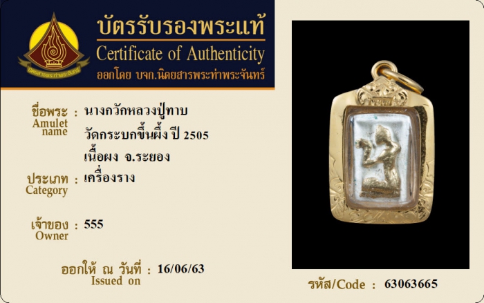 ค้นหาใบการันตีพระแท้