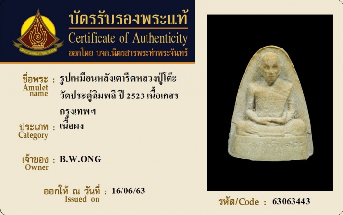 ค้นหาใบการันตีพระแท้